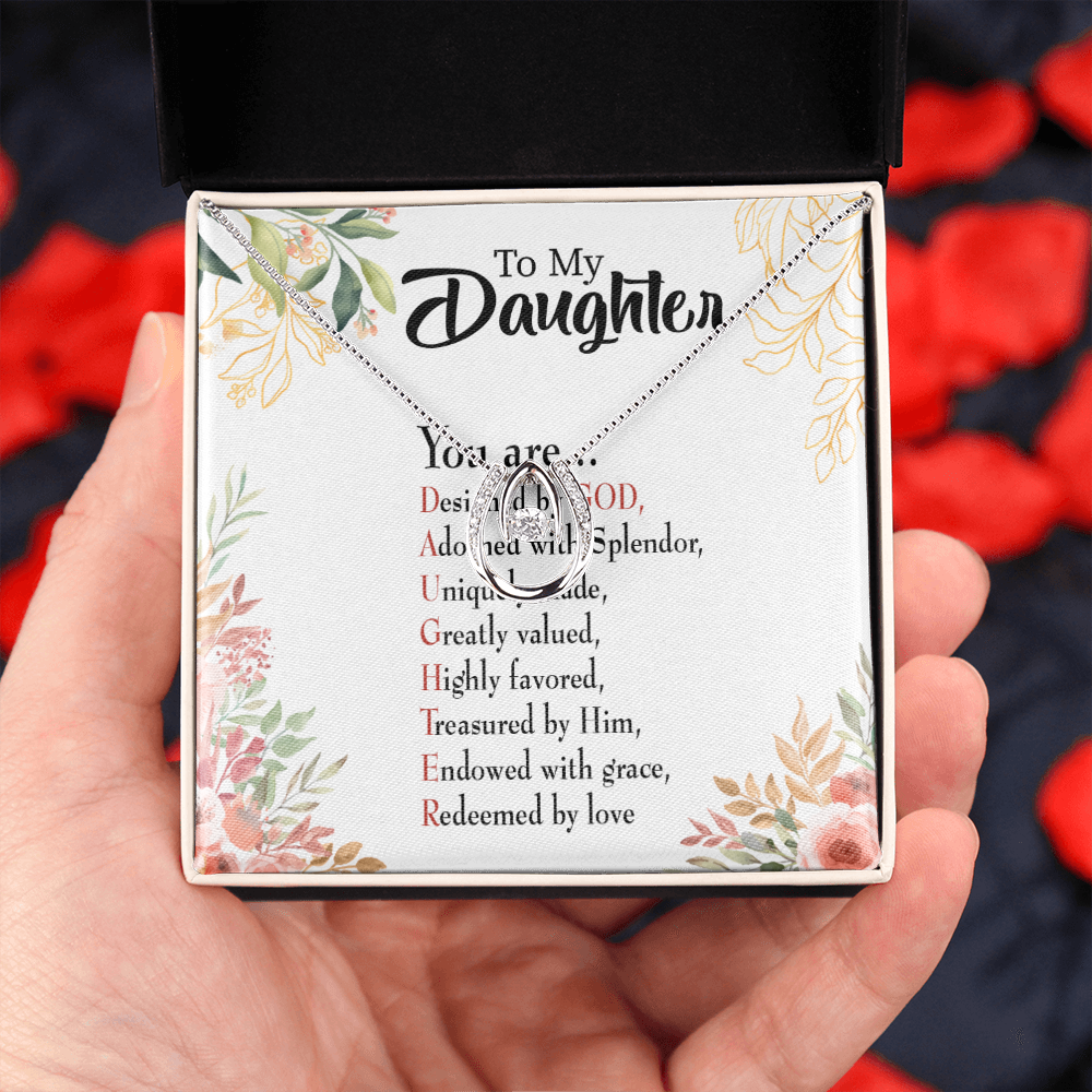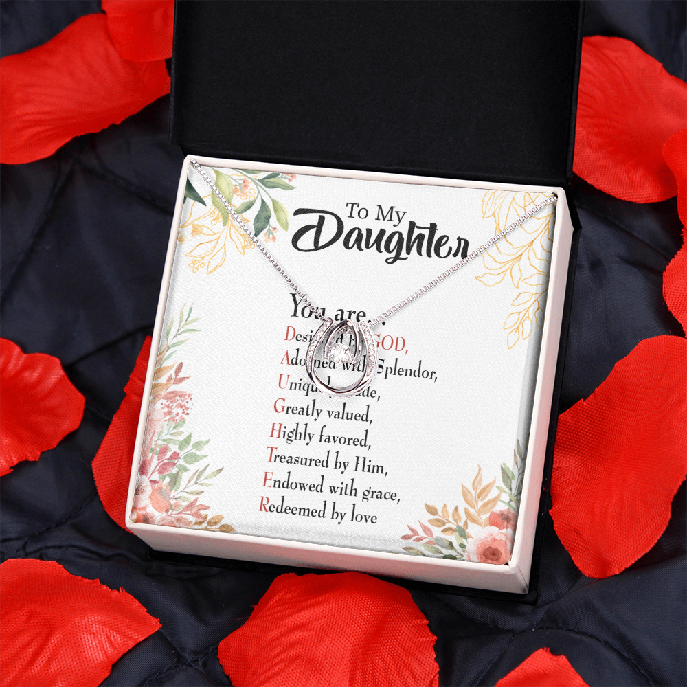 To My Daughter Designed by God Lucky Horseshoe Necklace Message Card 14k w CZ Crystals