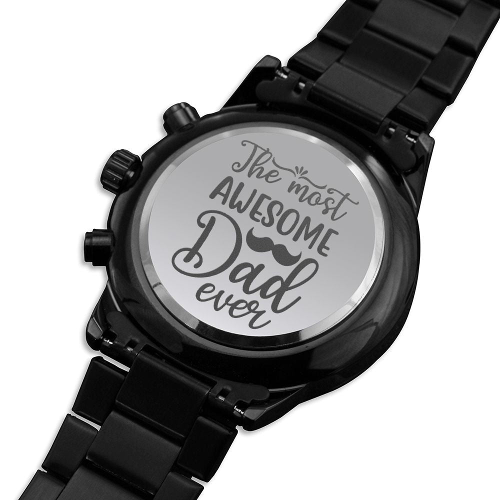 Most Awesome Dad Engraved Multifunction Analog Stainless Steel Chronograph Men's Watch W Copper Dial