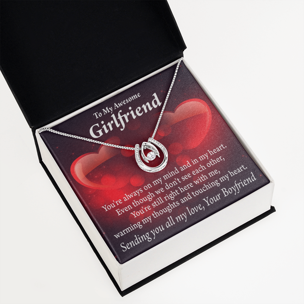 To My Girlfriend Always Warm My Thoughts Lucky Horseshoe Necklace Message Card 14k w CZ Crystals