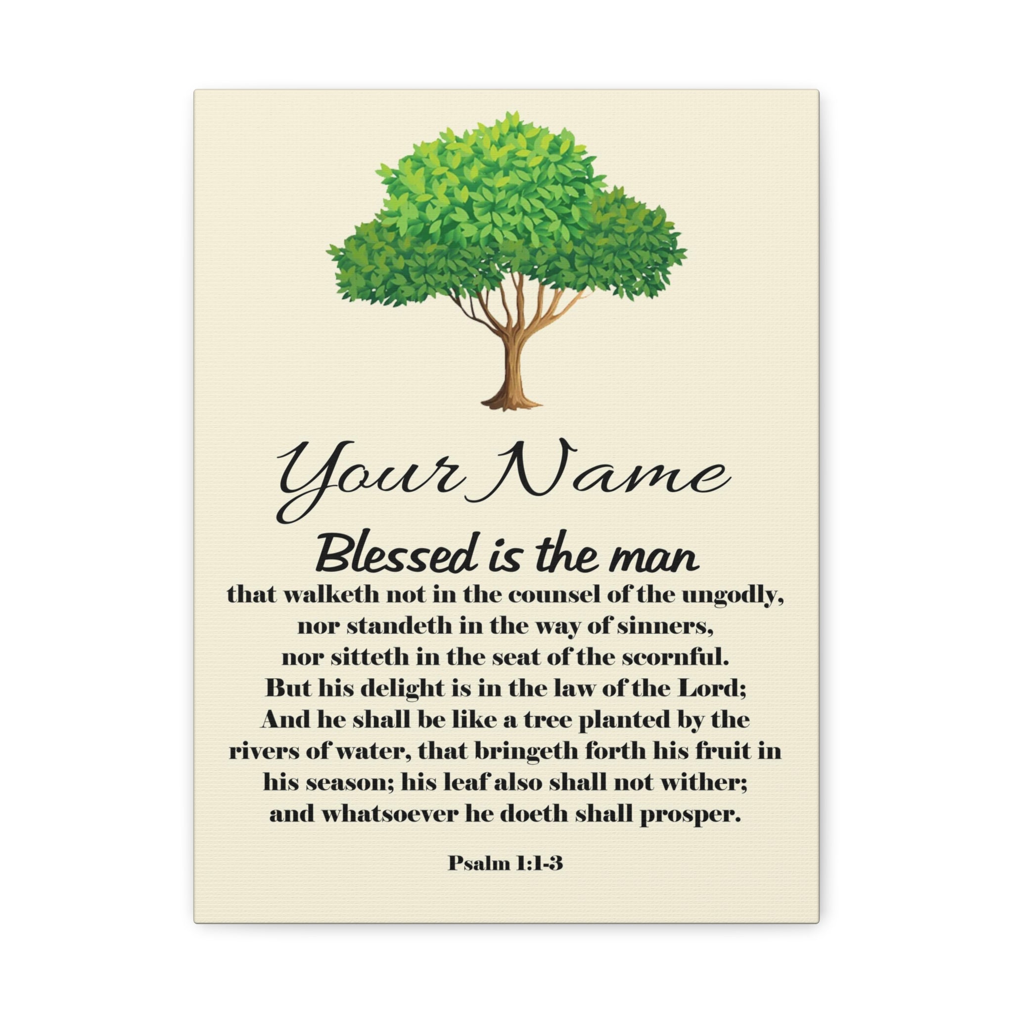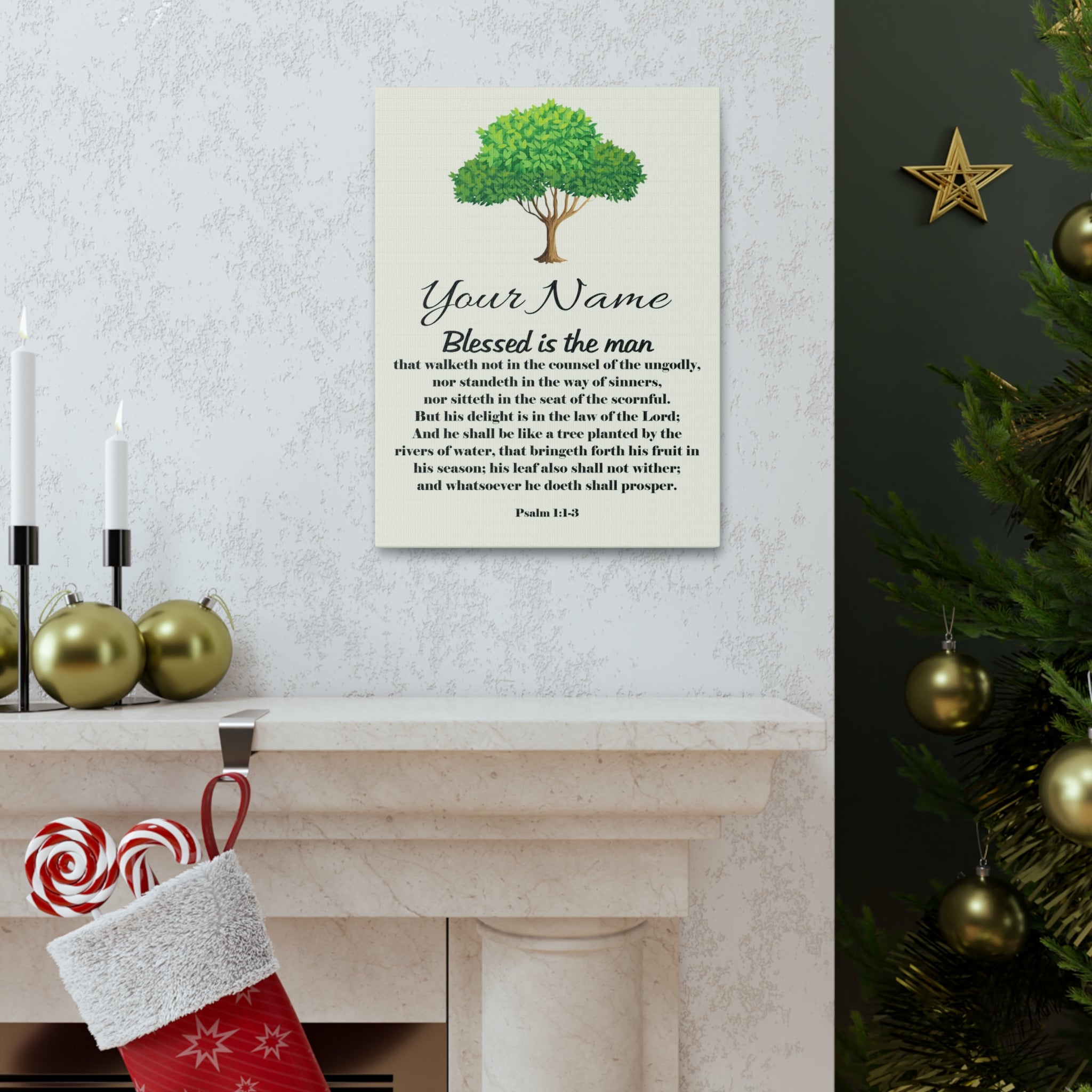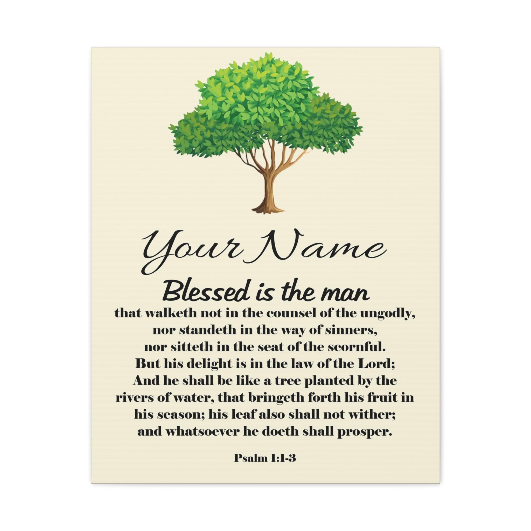 Personalized Psalm 1:1-3 Canvas – Blessed Is the Man – Custom Christian Wall Art