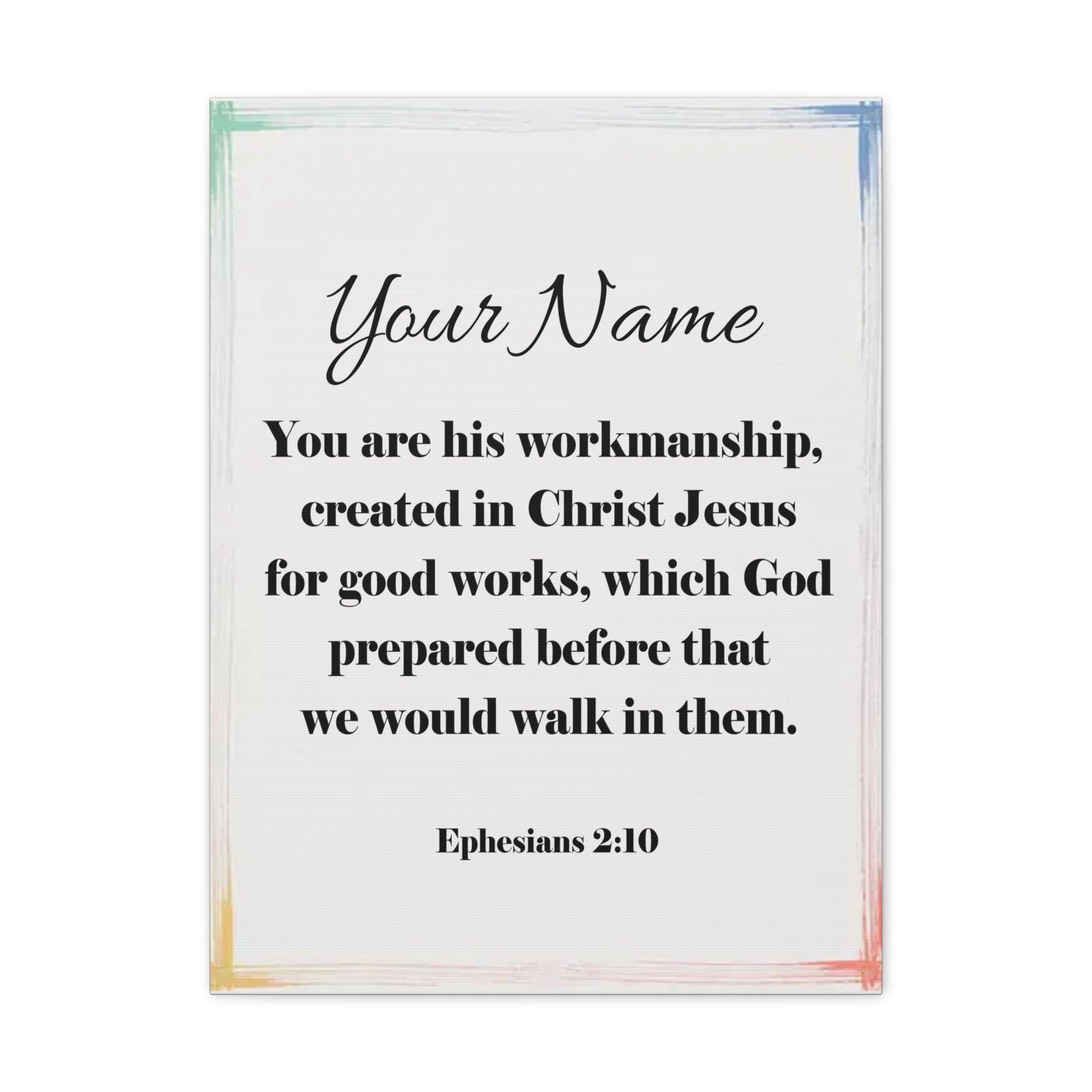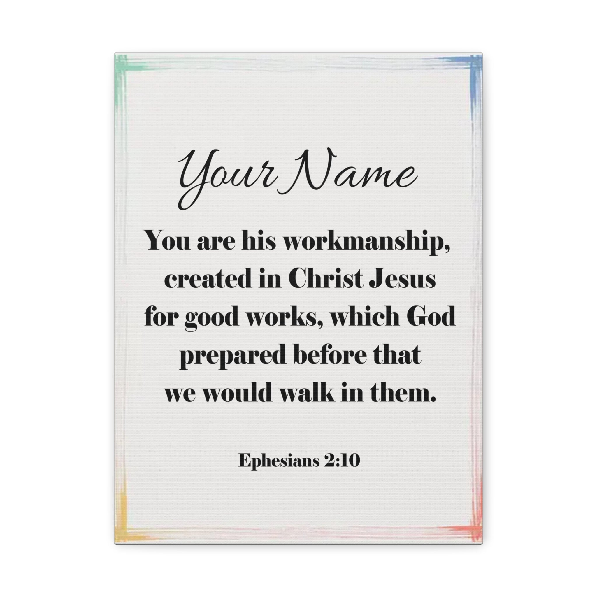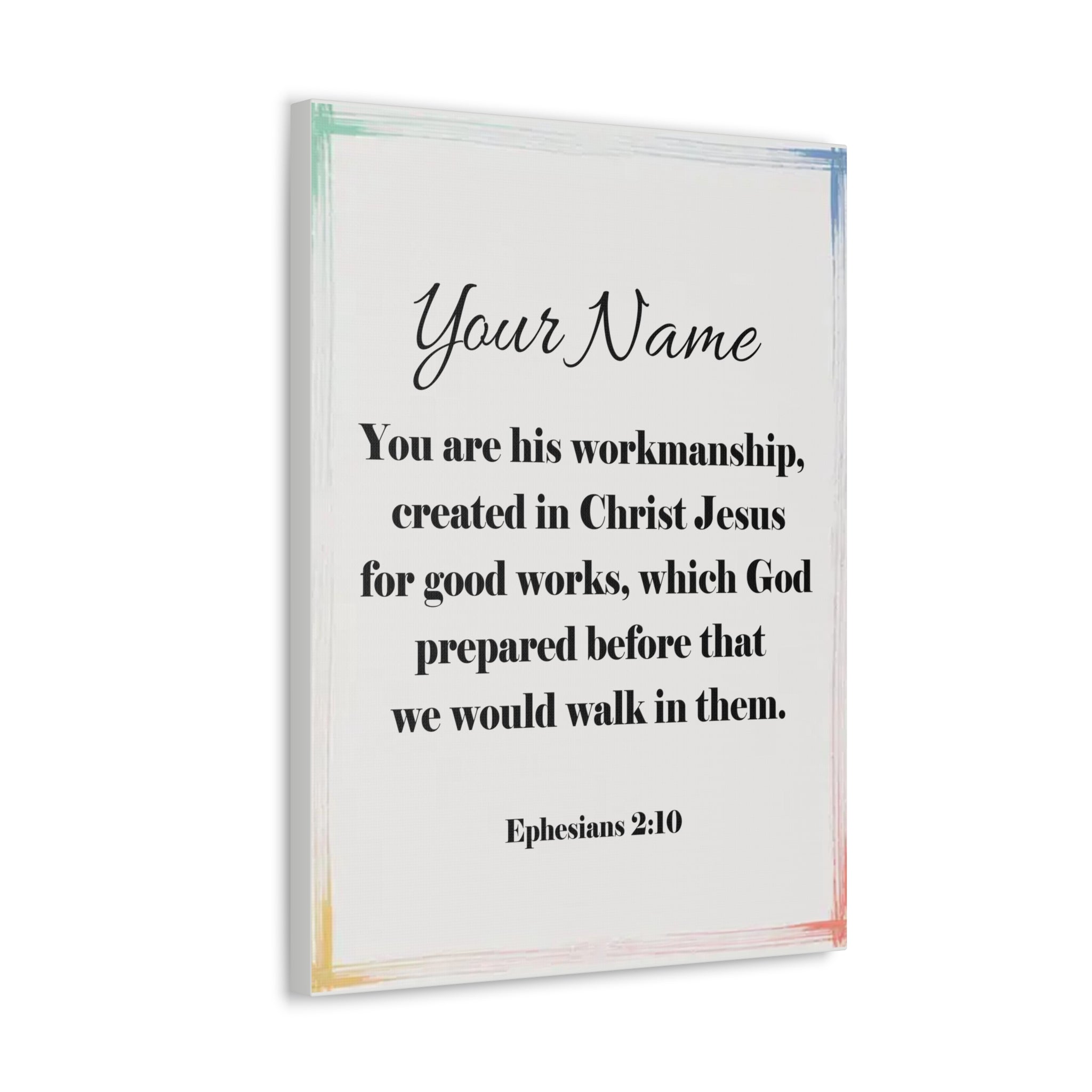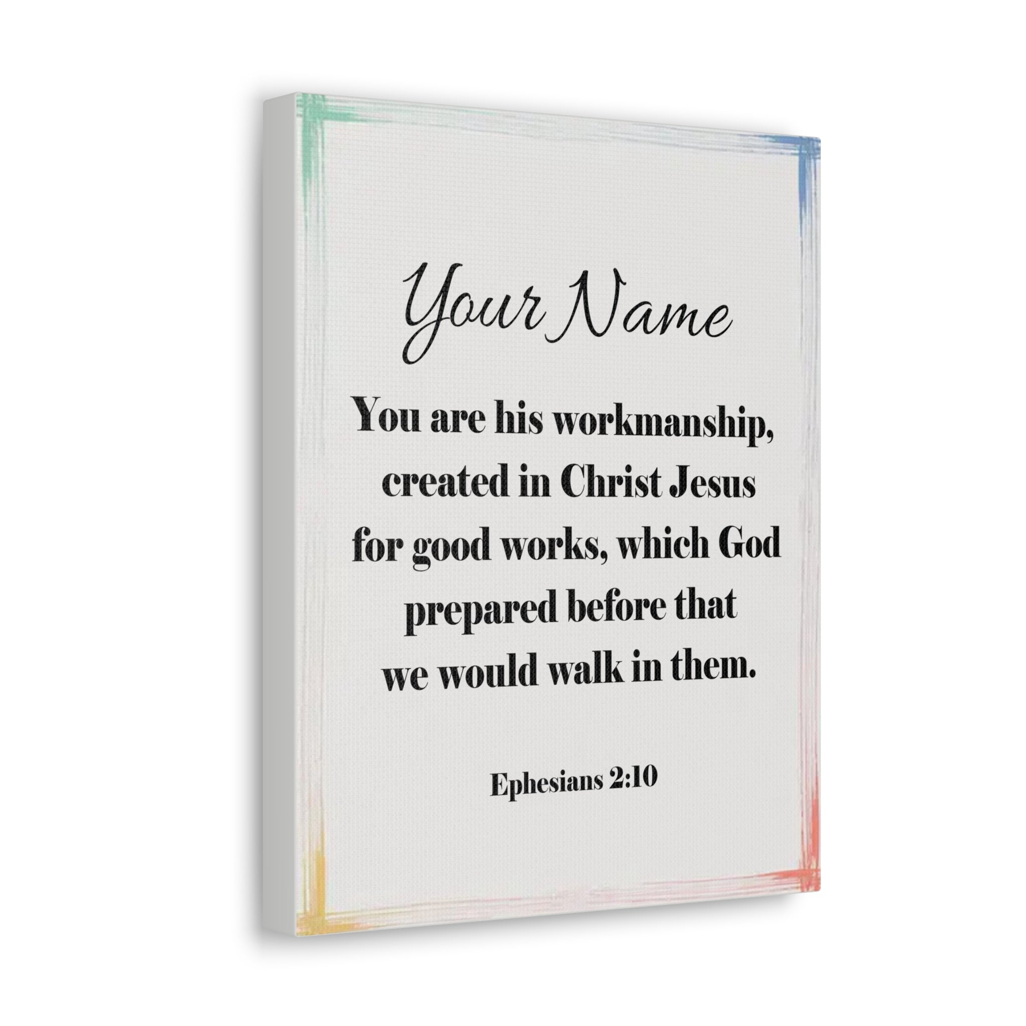 Personalized Ephesians 2:10 Canvas – His Workmanship – Custom Christian Wall Art