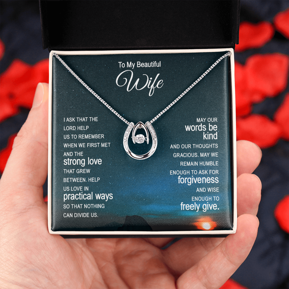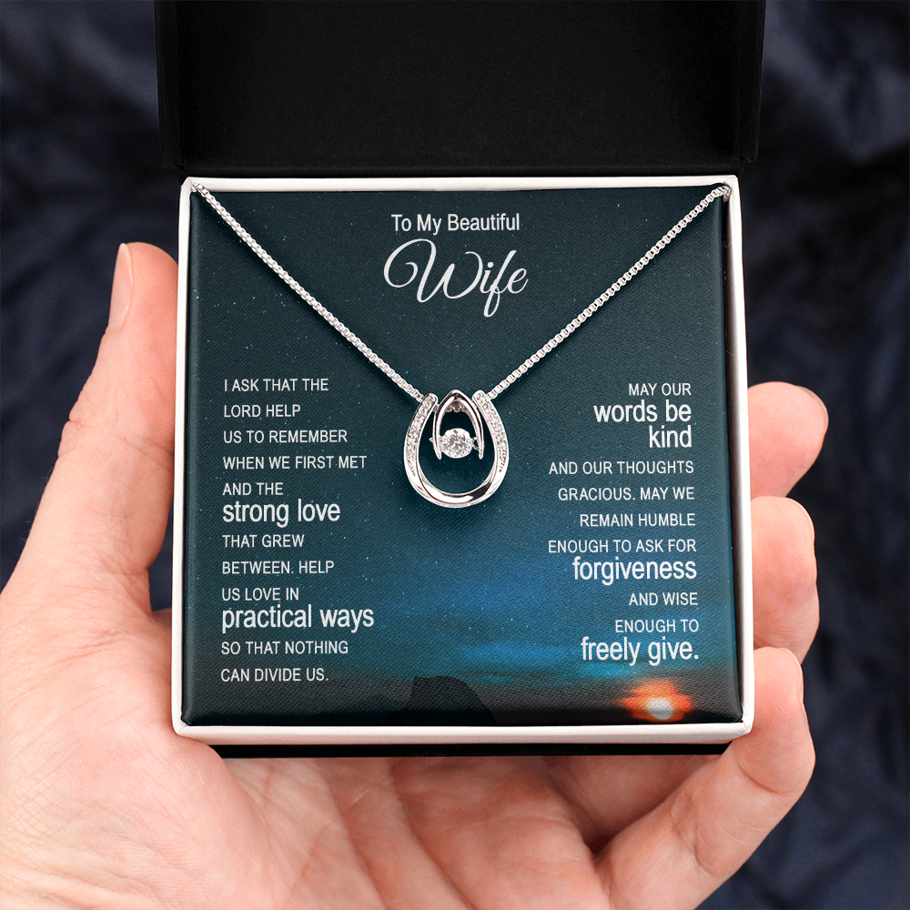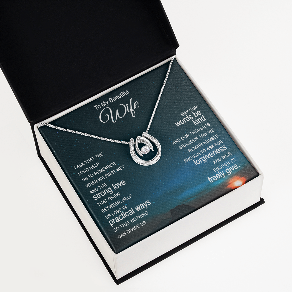 To My Wife Ask the Lord Lucky Horseshoe Necklace Message Card 14k w CZ Crystals