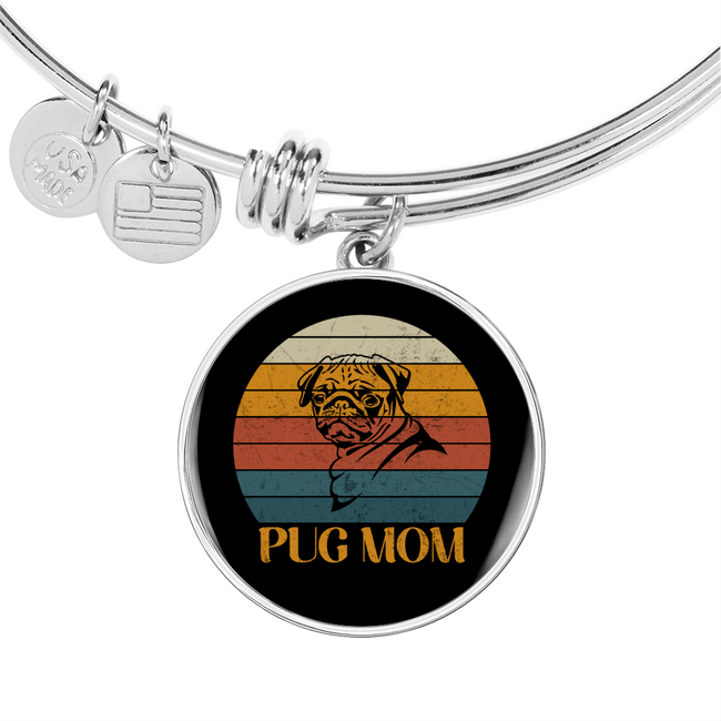 White Pug Mom Bracelet Stainless Steel or 18k Gold Circle Bangle