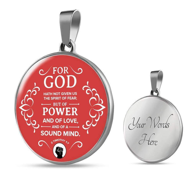 Power Of God 2 Timothy 1:7 Circle Necklace Stainless Steel or 18k Gold 18-22"