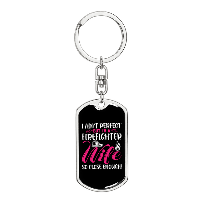 To My Wife Ain't Perfect Firefighter Wife Stainless Steel or 18k Gold Premium Swivel Dog Tag Keychain