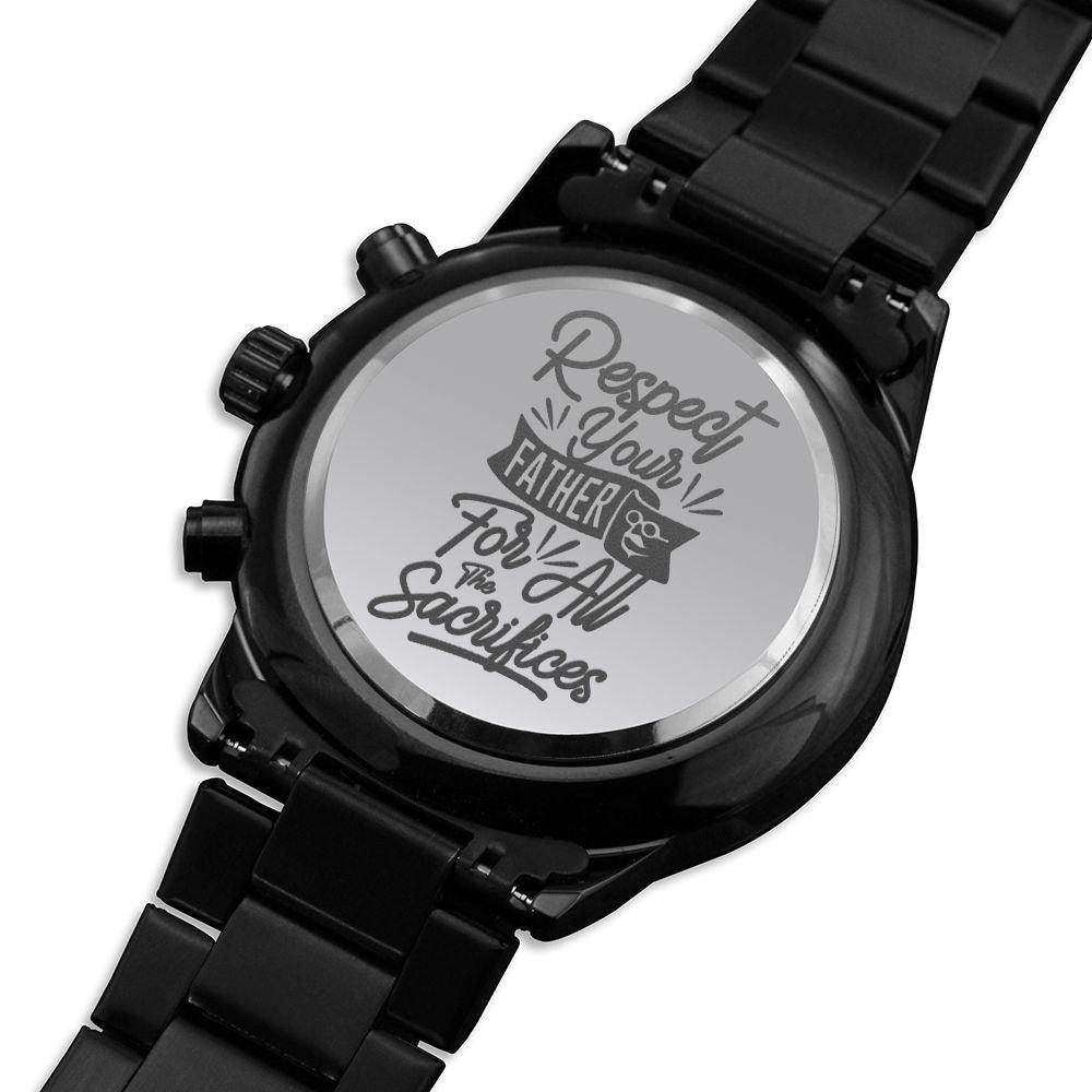 All Dad's Sacrifices Engraved Multifunction Analog Stainless Steel Chronograph Men's Watch W Copper Dial