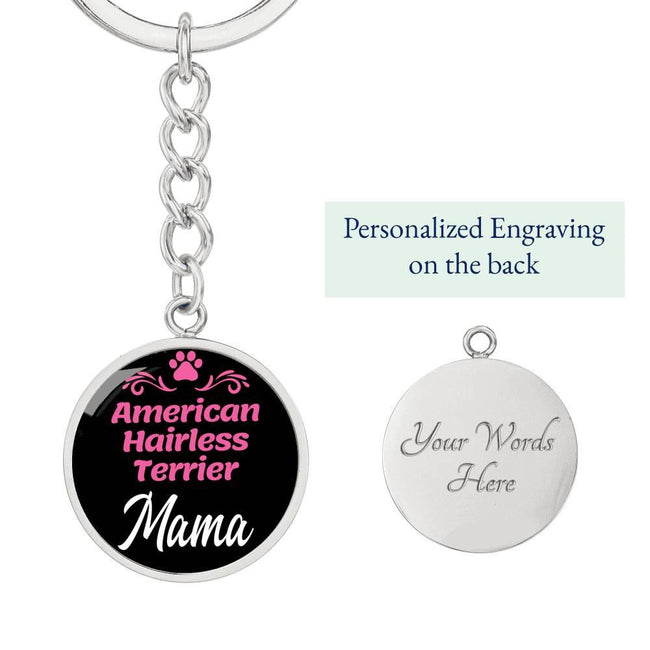 Dog Mom Keyring American Hairless Terrier Mama Circle Keychain Stainless Steel or 18k Gold