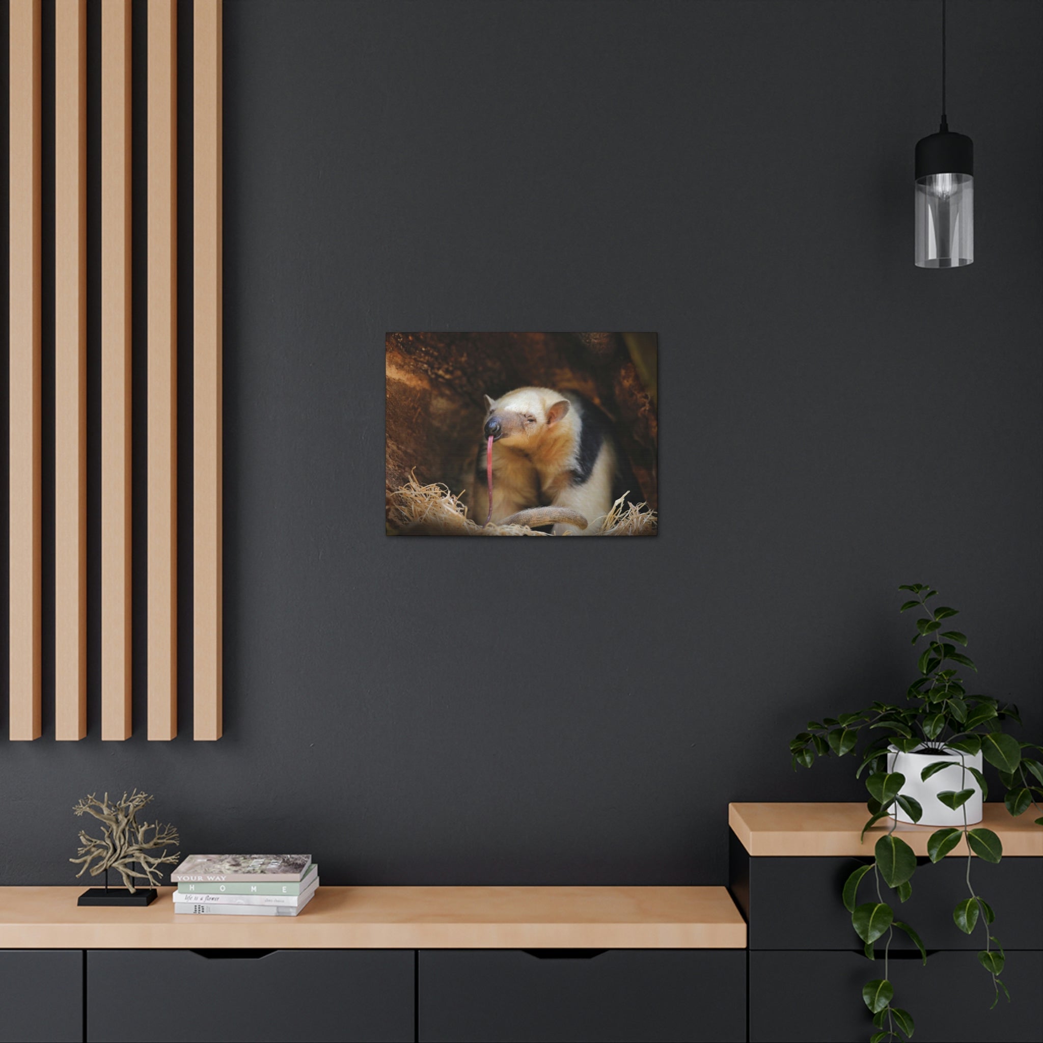 Yes. Every canvas ships with mounting hardware already installed on the back, plus rubber grip dots on the bottom to keep it level and secure on your wall — no extra tools or hardware needed.