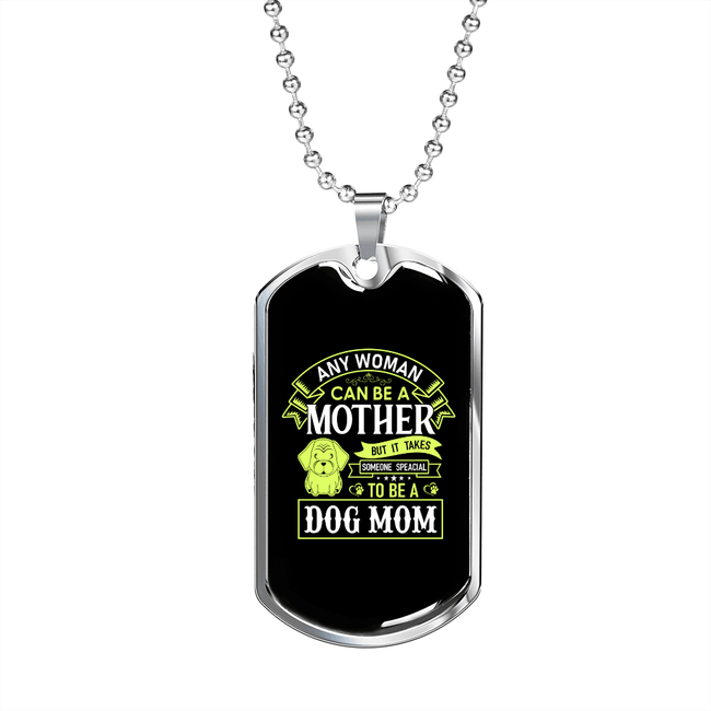 Any Women Can Be a Dog Mom Necklace Stainless Steel or 18k Gold Dog Tag 24" Chain