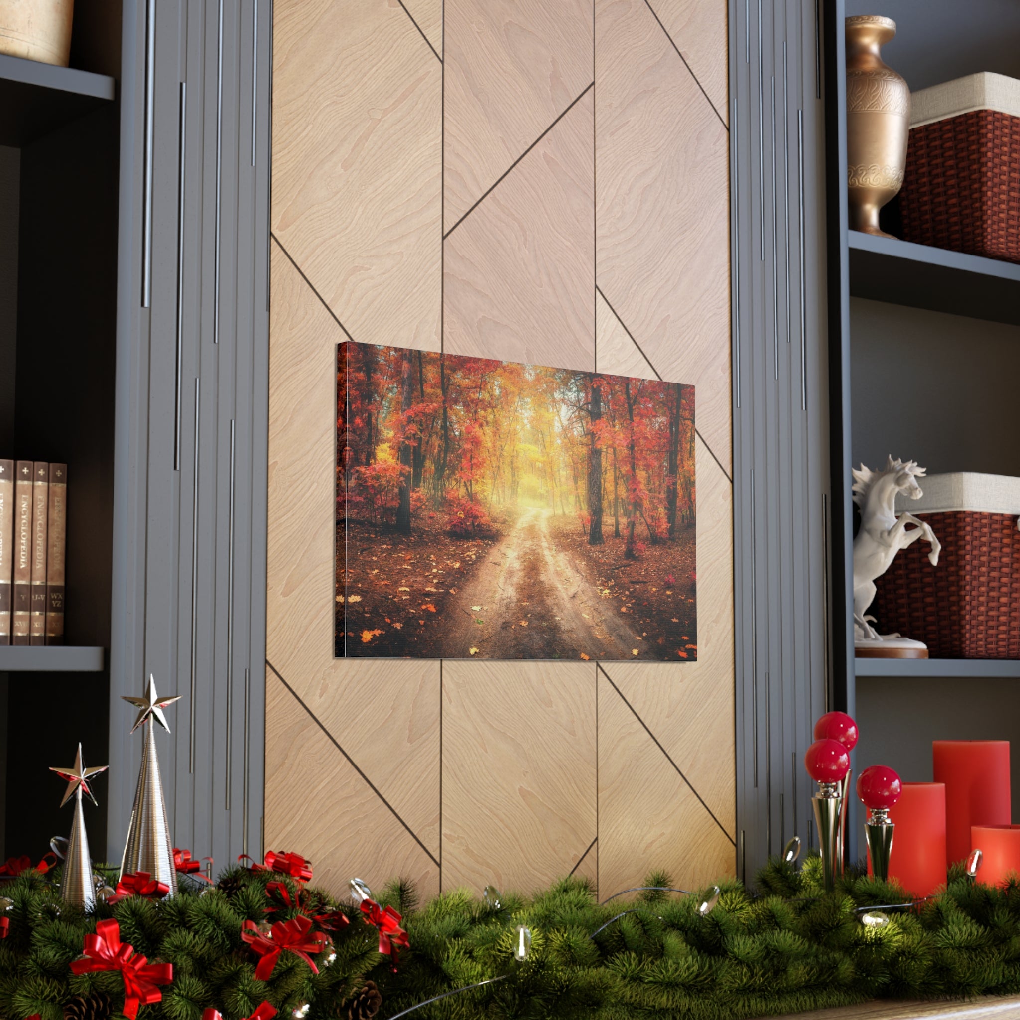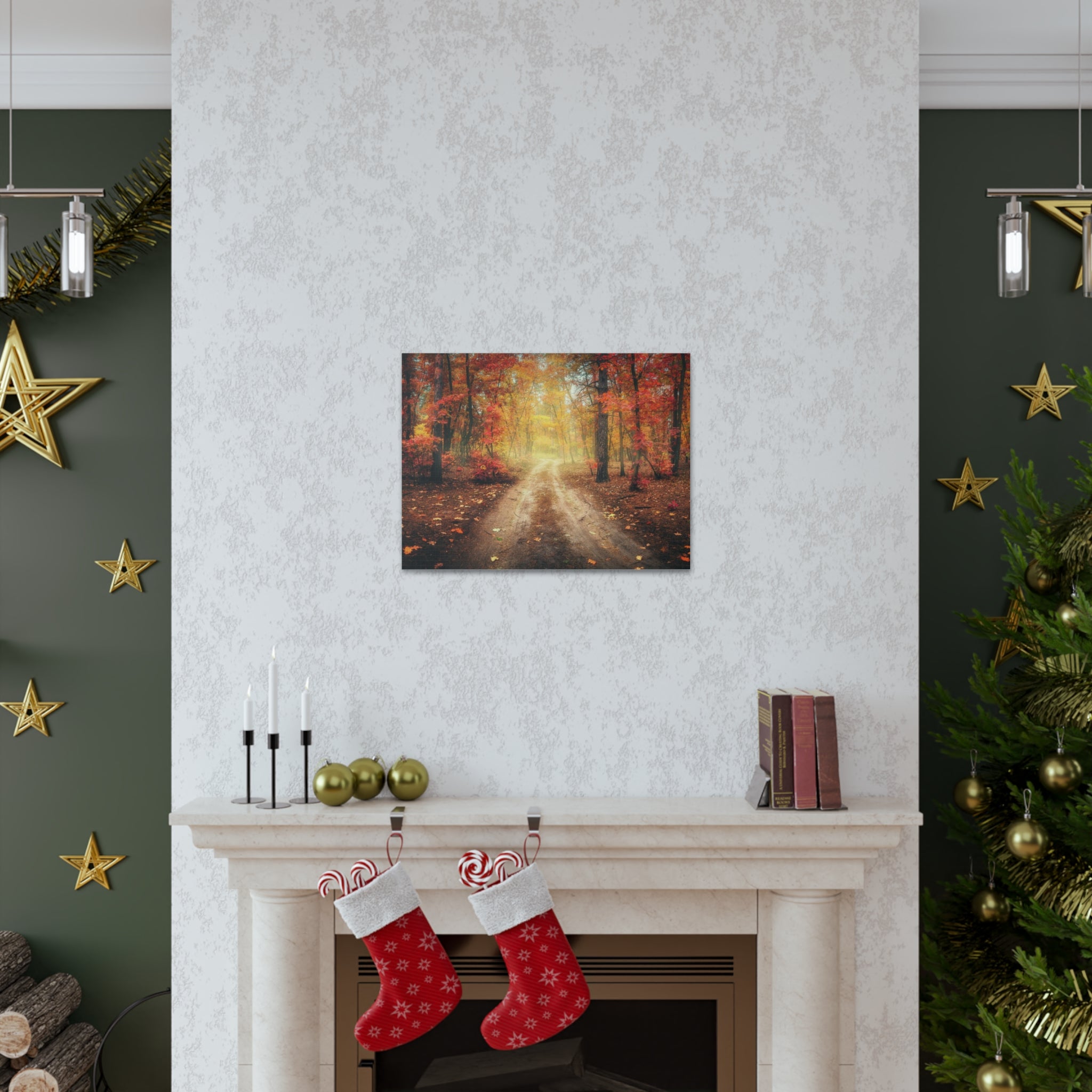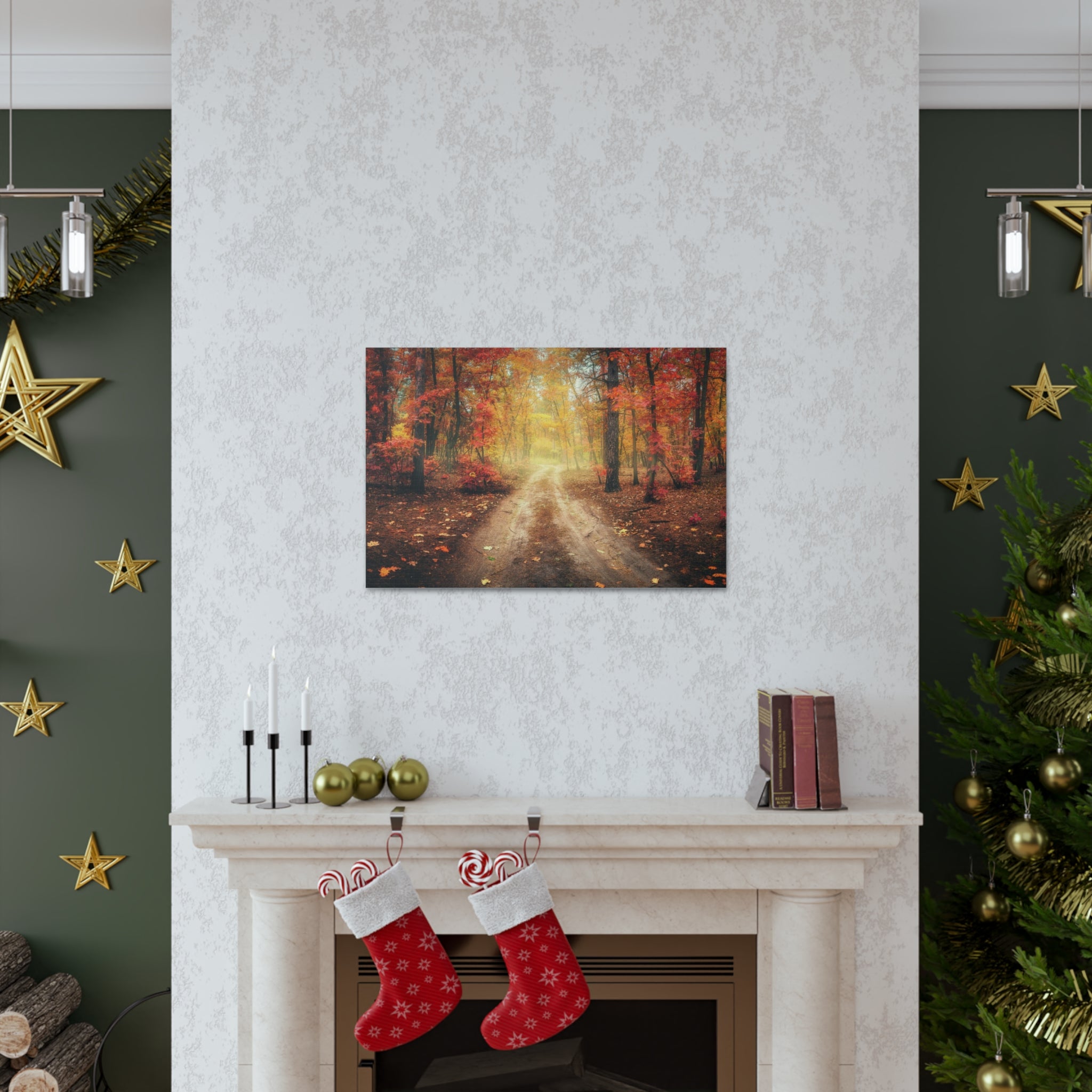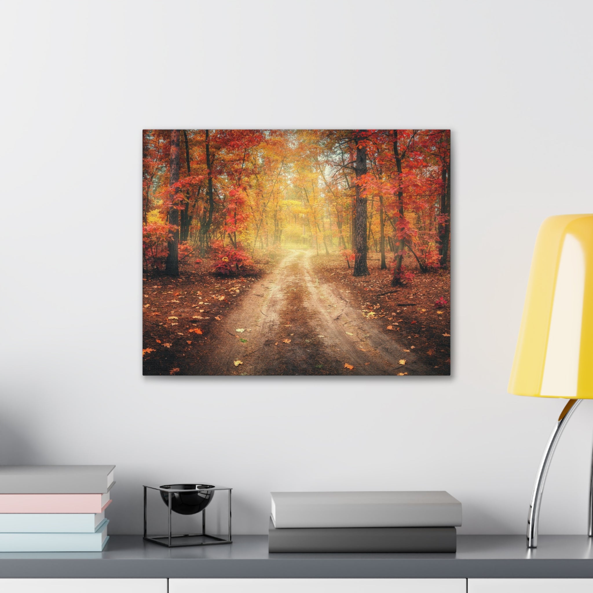 Autumn Forest Misty Orange Tree Path Nature Wilderness Photography Canvas Wall Art for Home Decor Ready-to-Hang