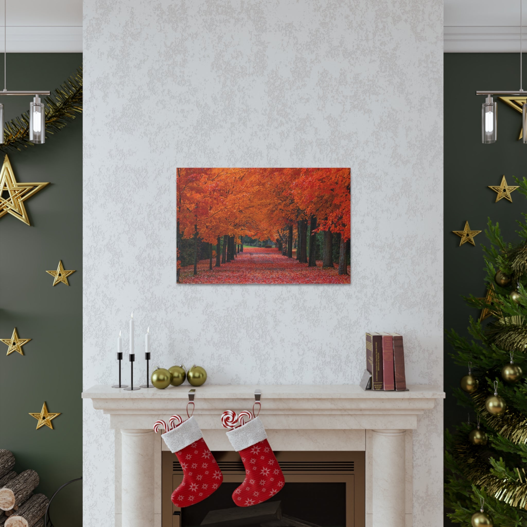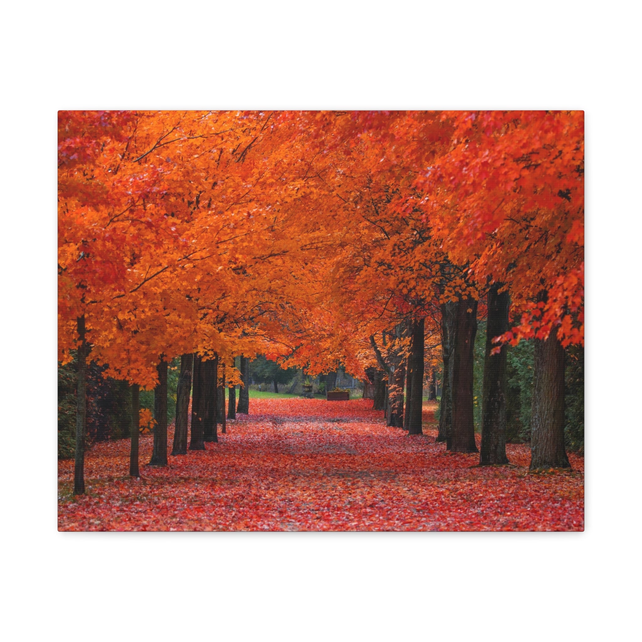 Autumn Forest Orange Leave Tree Trail Nature Wilderness Photography Canvas Wall Art for Home Decor Ready-to-Hang