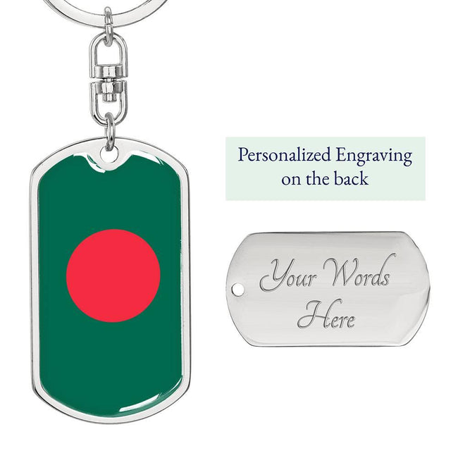 Bangladesh Flag Keychain Dog Tag Stainless Steel or 18k Gold
