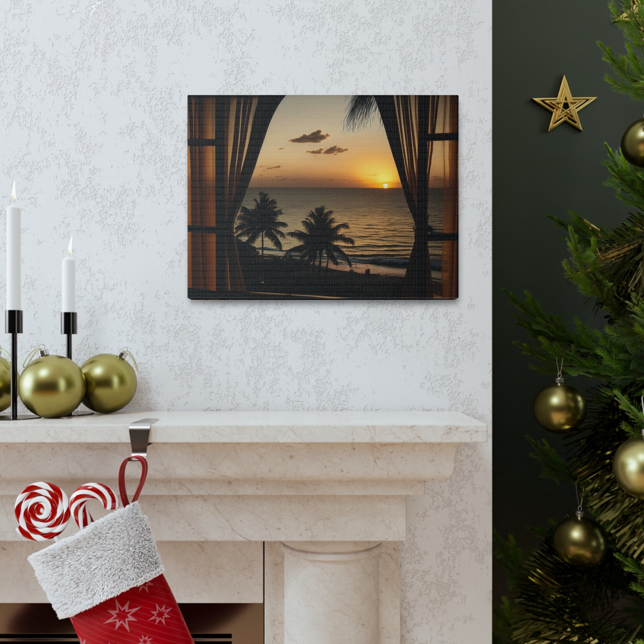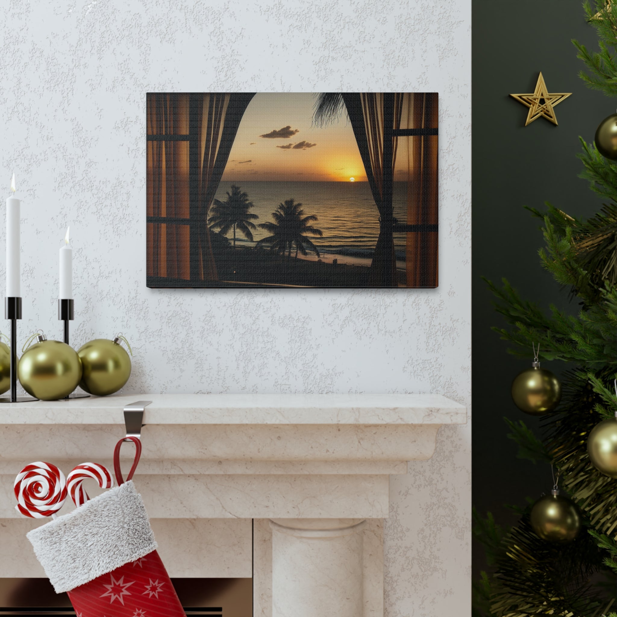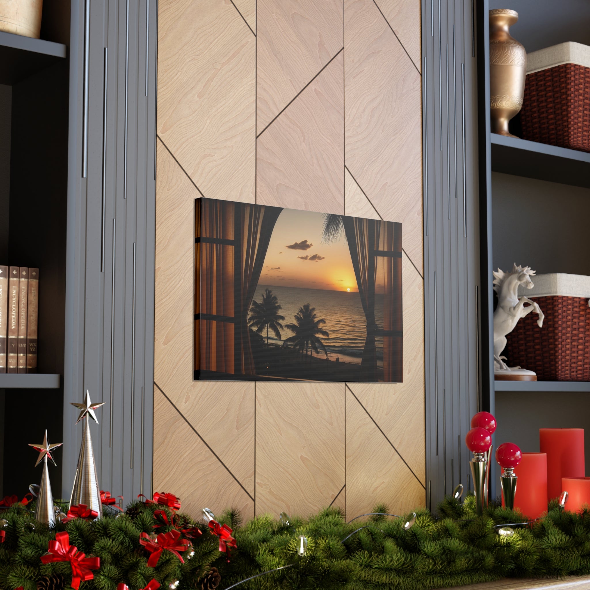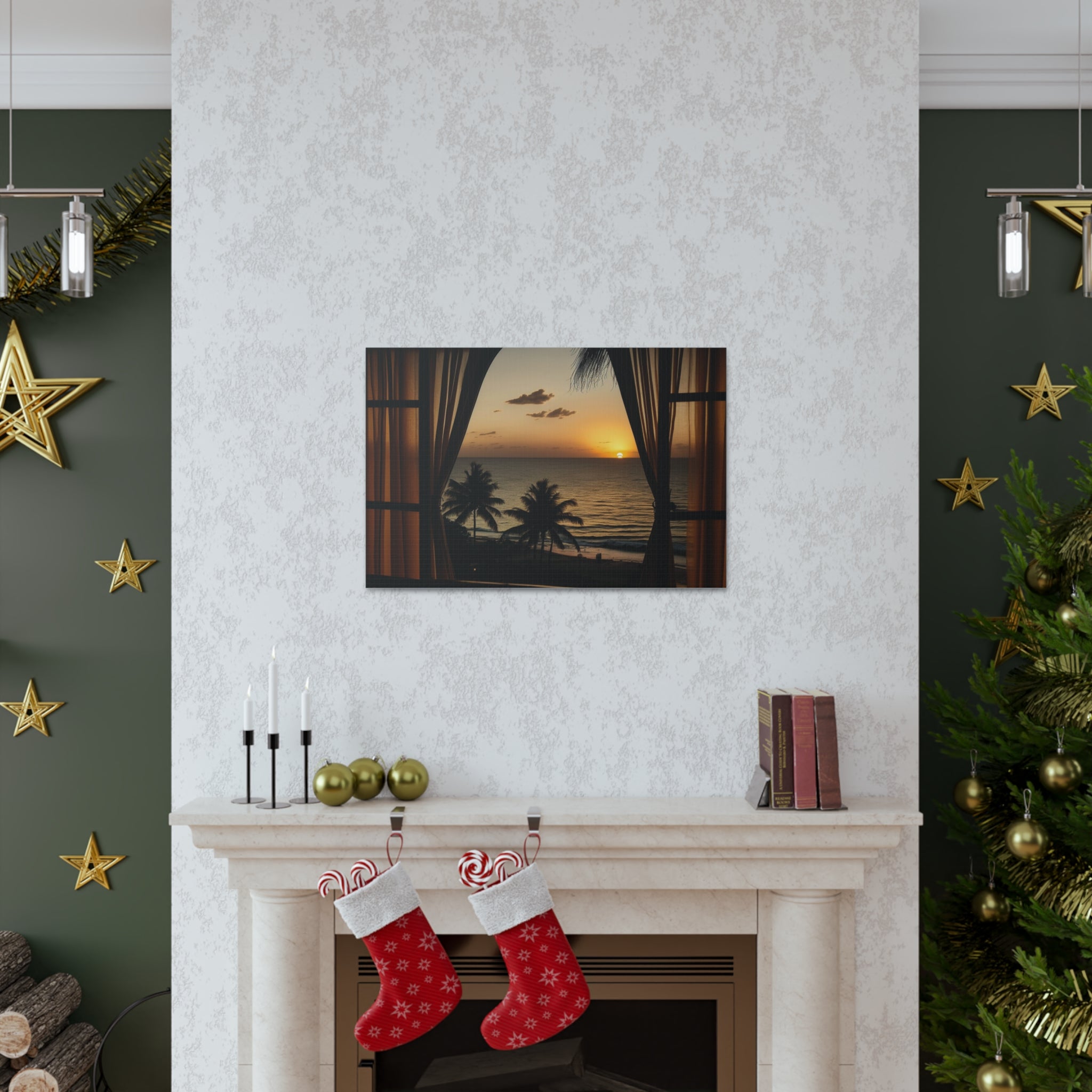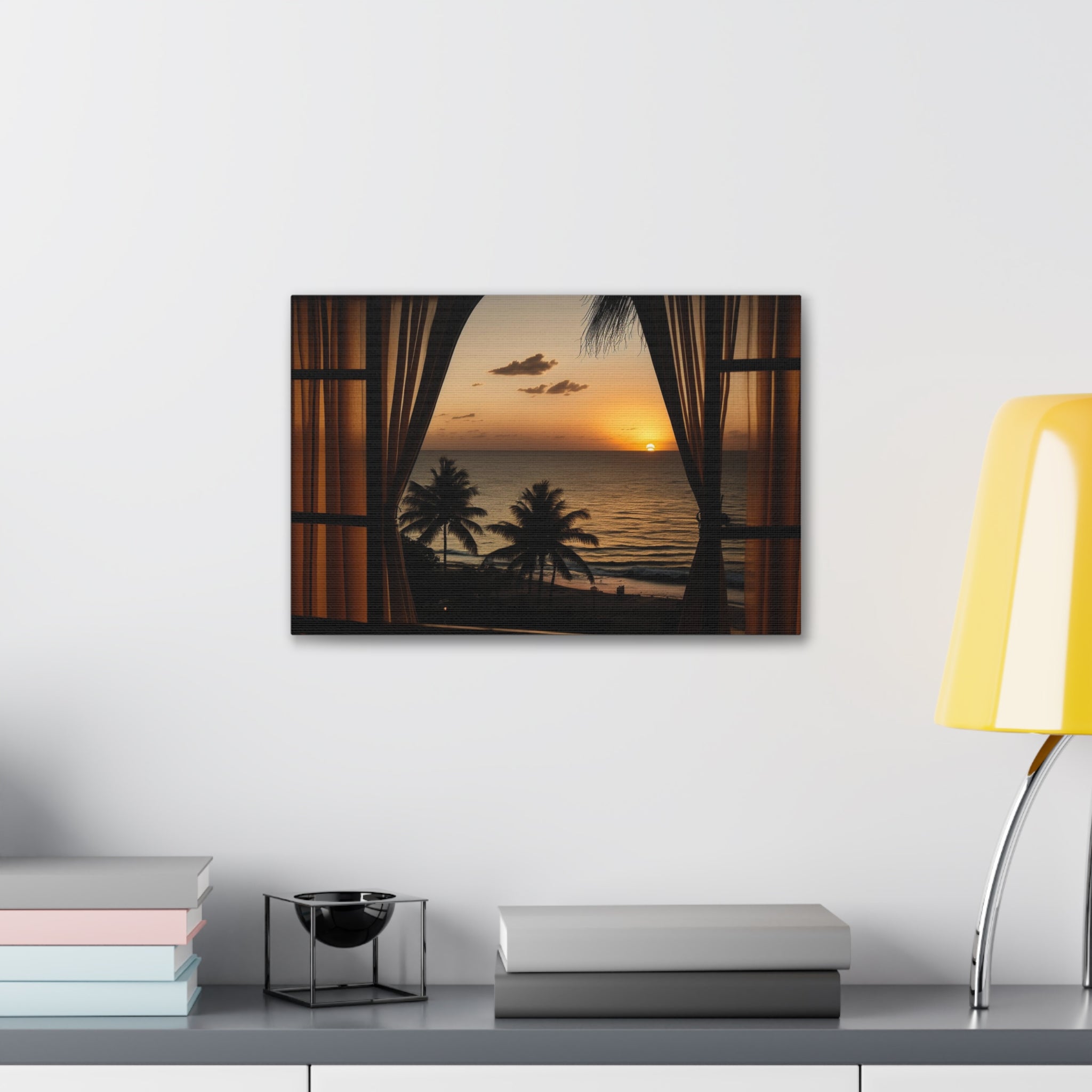Beautiful View Sunset Sea Open Window Ocean Canvas Wall Art for Home Decor Ready-to-Hang