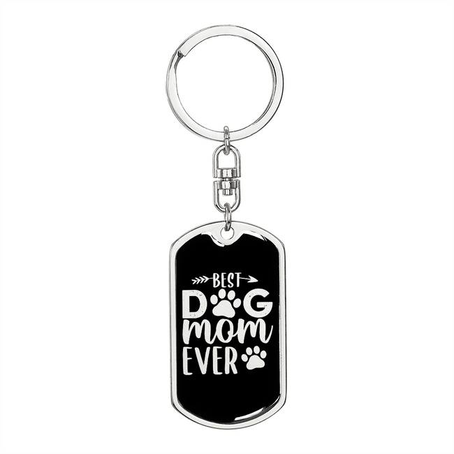 Best Dog Mom Ever TranspArent Stainless Steel or 18k Gold Premium Swivel Dog Tag Keychain