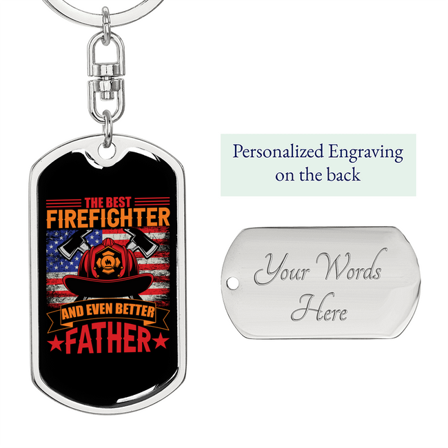 Best Firefighter Better Father Stainless Steel or 18k Gold Premium Swivel Dog Tag Keychain
