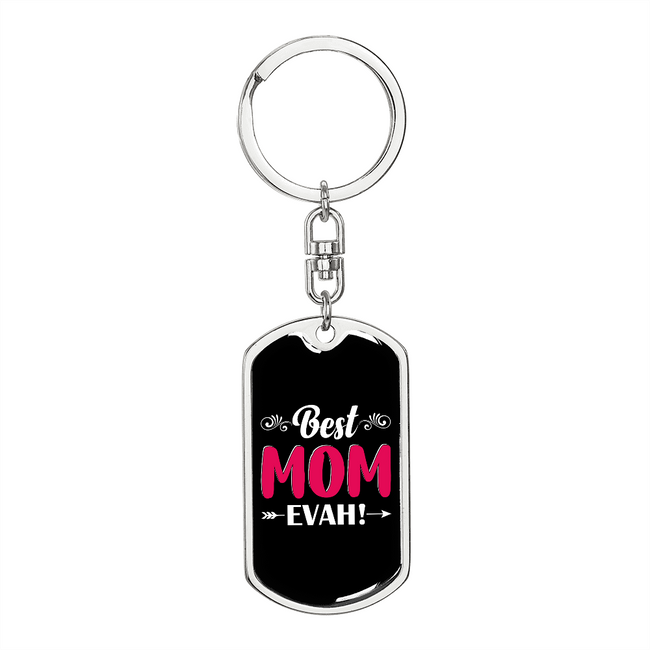 Best Mom Evah! Stainless Steel or 18k Gold Premium Swivel Dog Tag Keychain