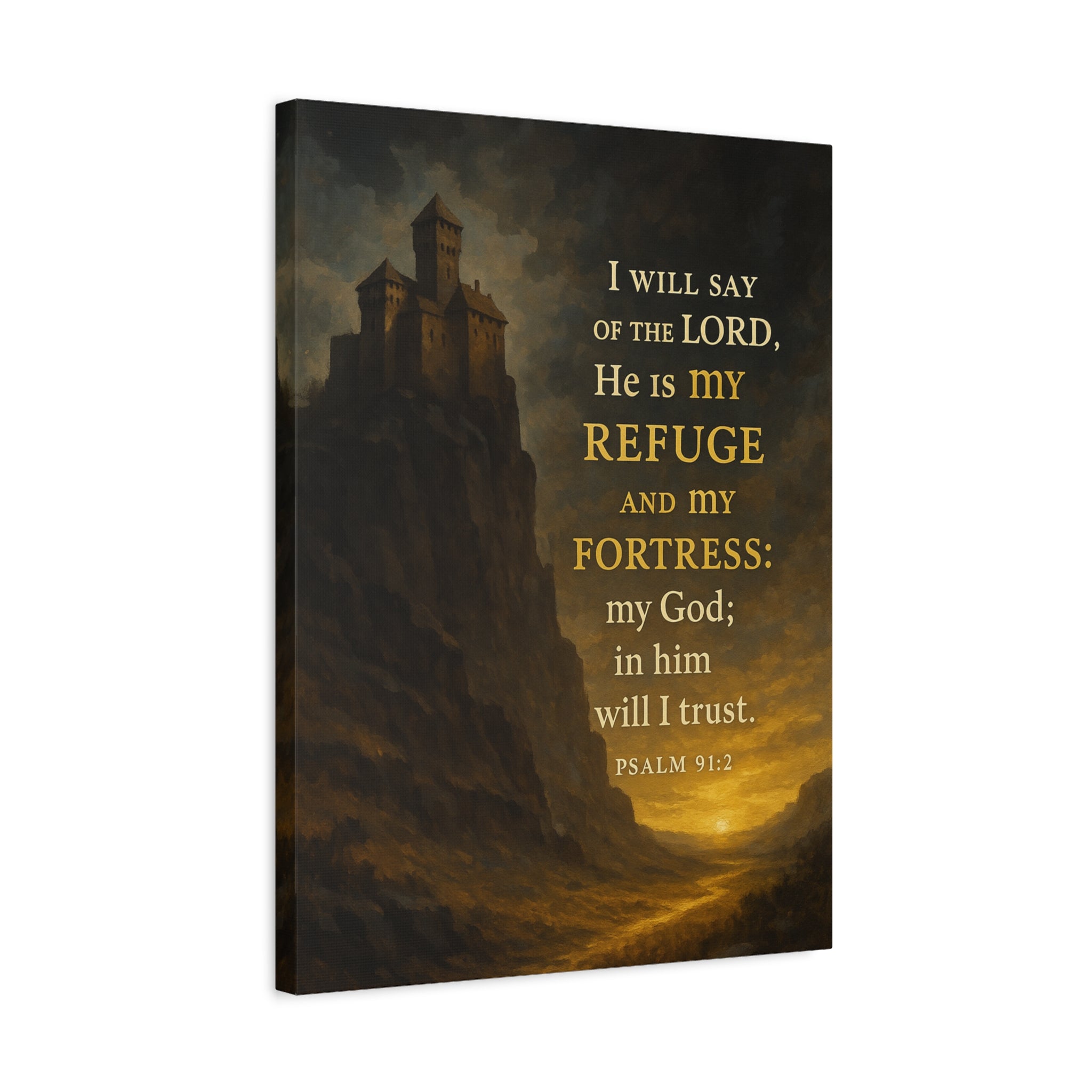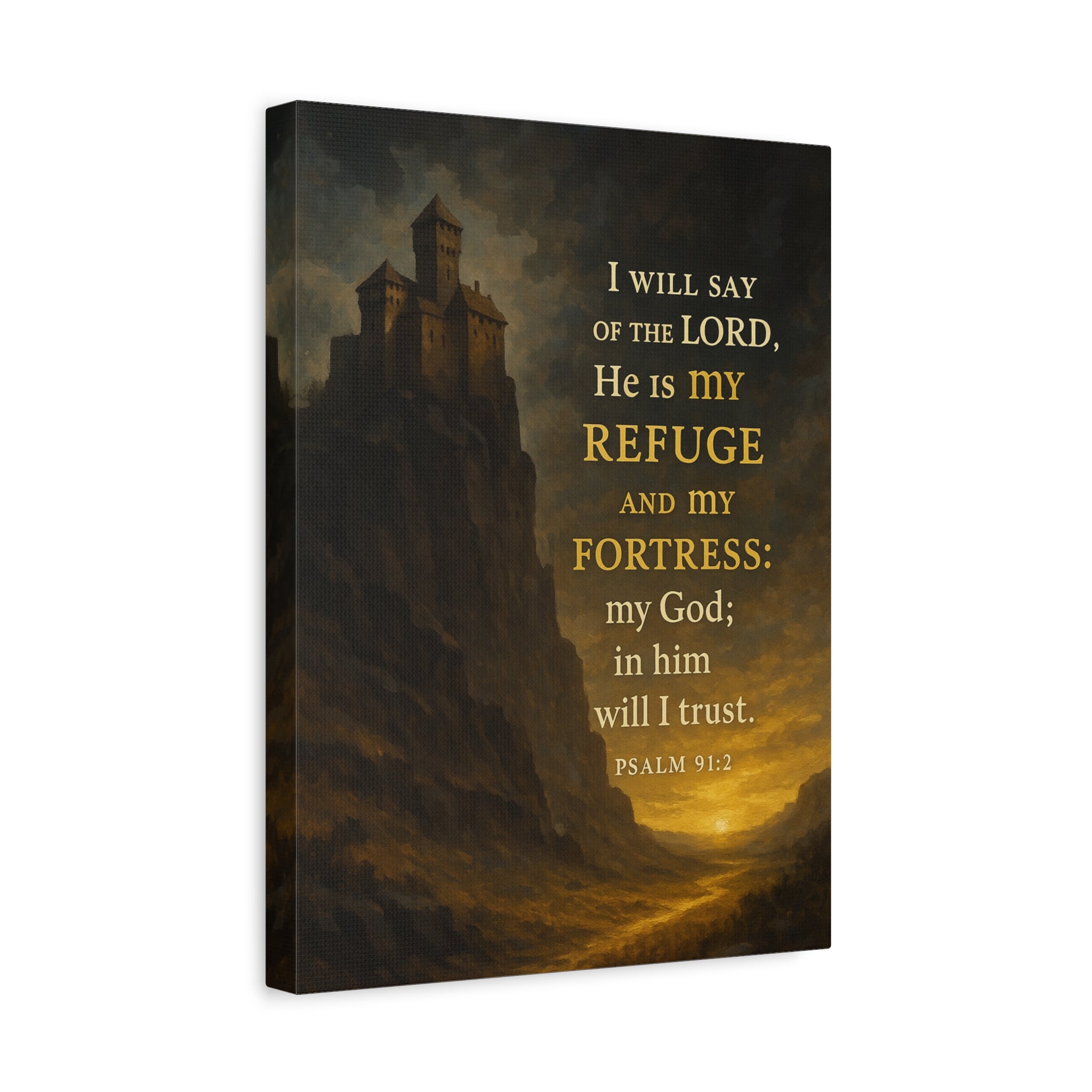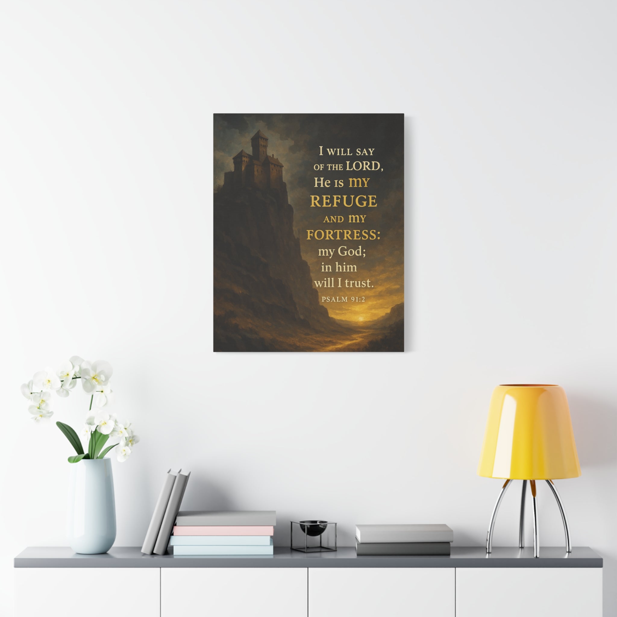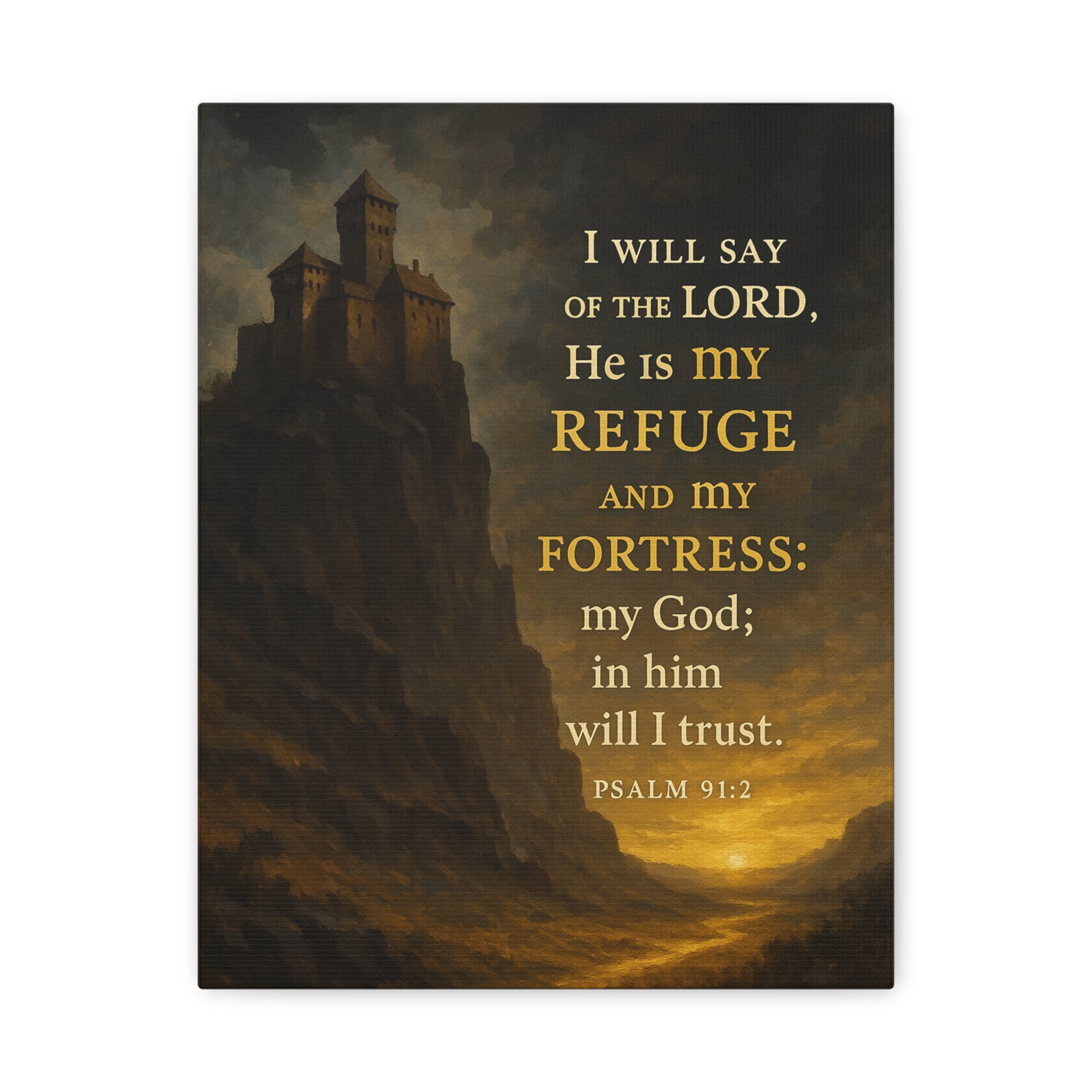 Bible Verse Canvas Psalm 91:2 Christian Home Décor Wall Art Scripture Ready to Hang Faith Print