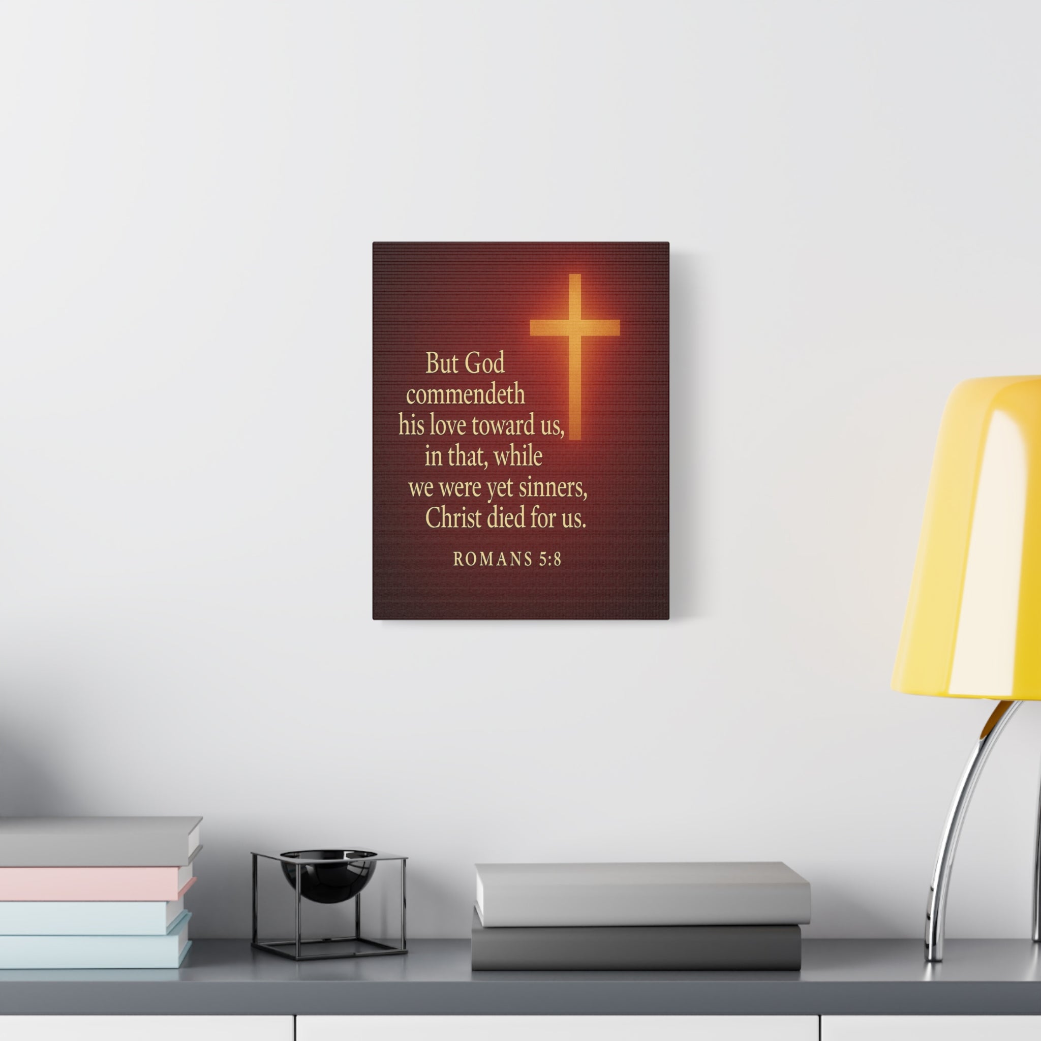 Bible Verse Canvas Romans 5:8 Christian Home Décor Wall Art Scripture Ready to Hang Faith Print