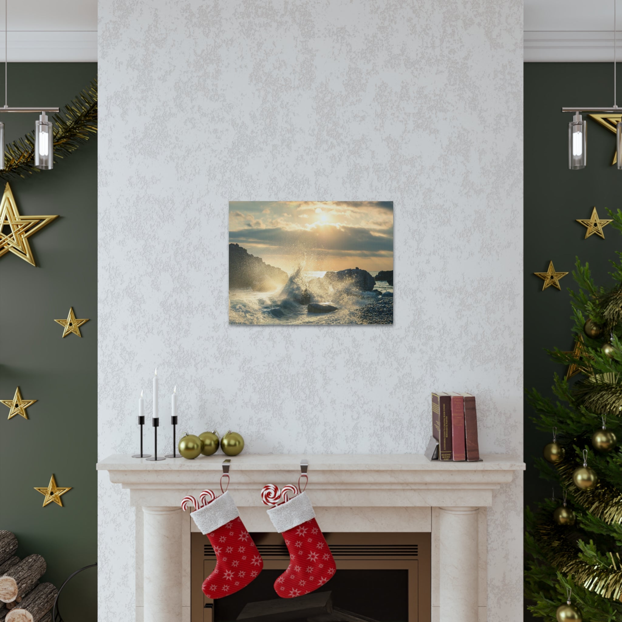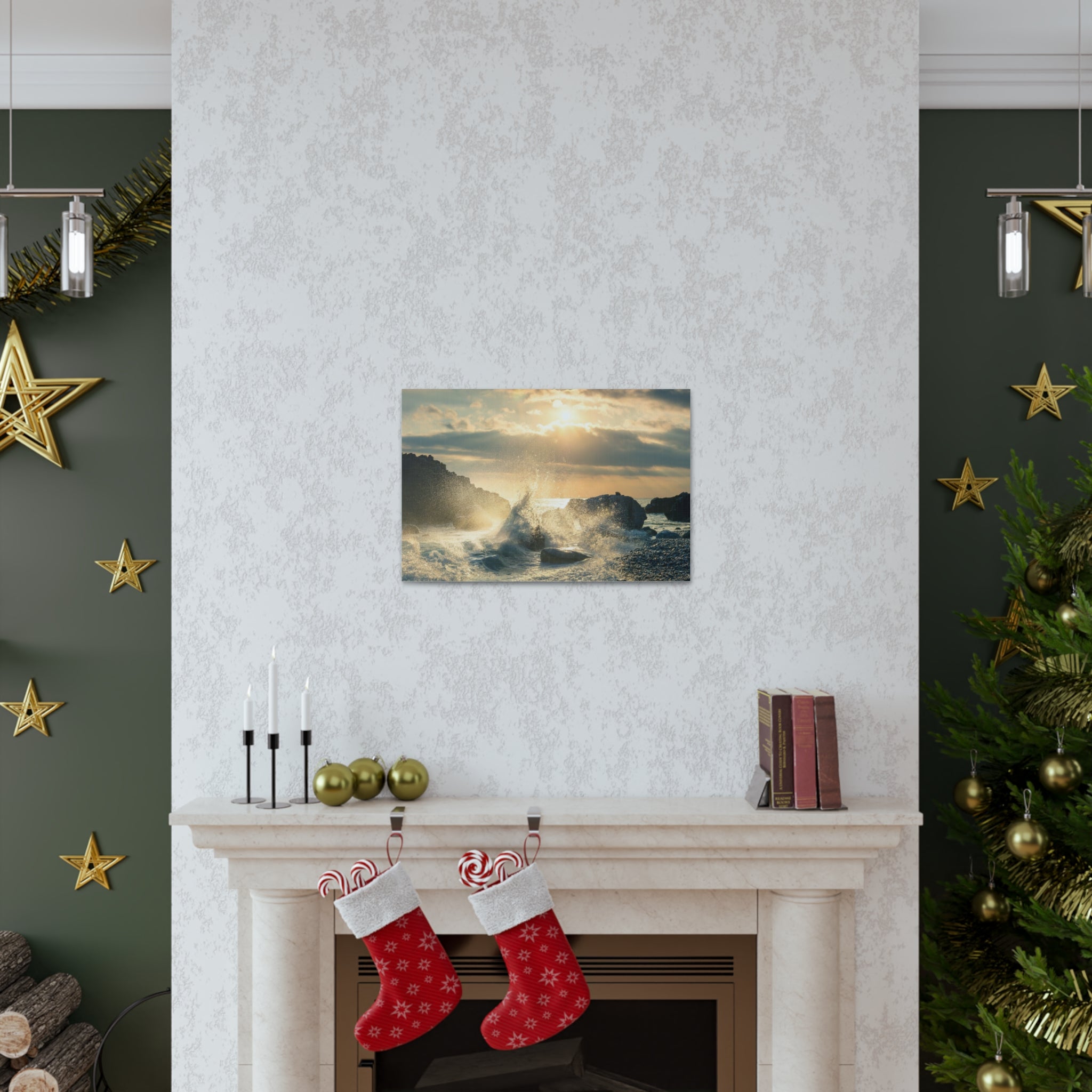 Big Wave Hit Rock At Beach Sunset Seascape Ocean Canvas Wall Art for Home Decor Ready-to-Hang