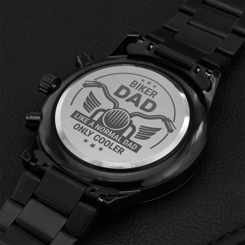 Biker Dad Engraved Multifunction Analog Stainless Steel Chronograph Men's Watch W Copper Dial