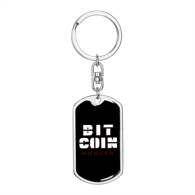 Bitcoin Hodler Crypto Stainless Steel or 18k Gold Premium Swivel Dog Tag Keychain