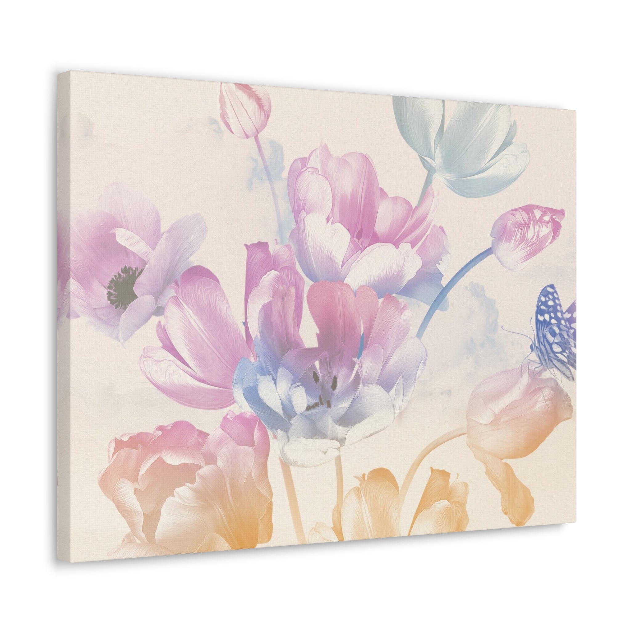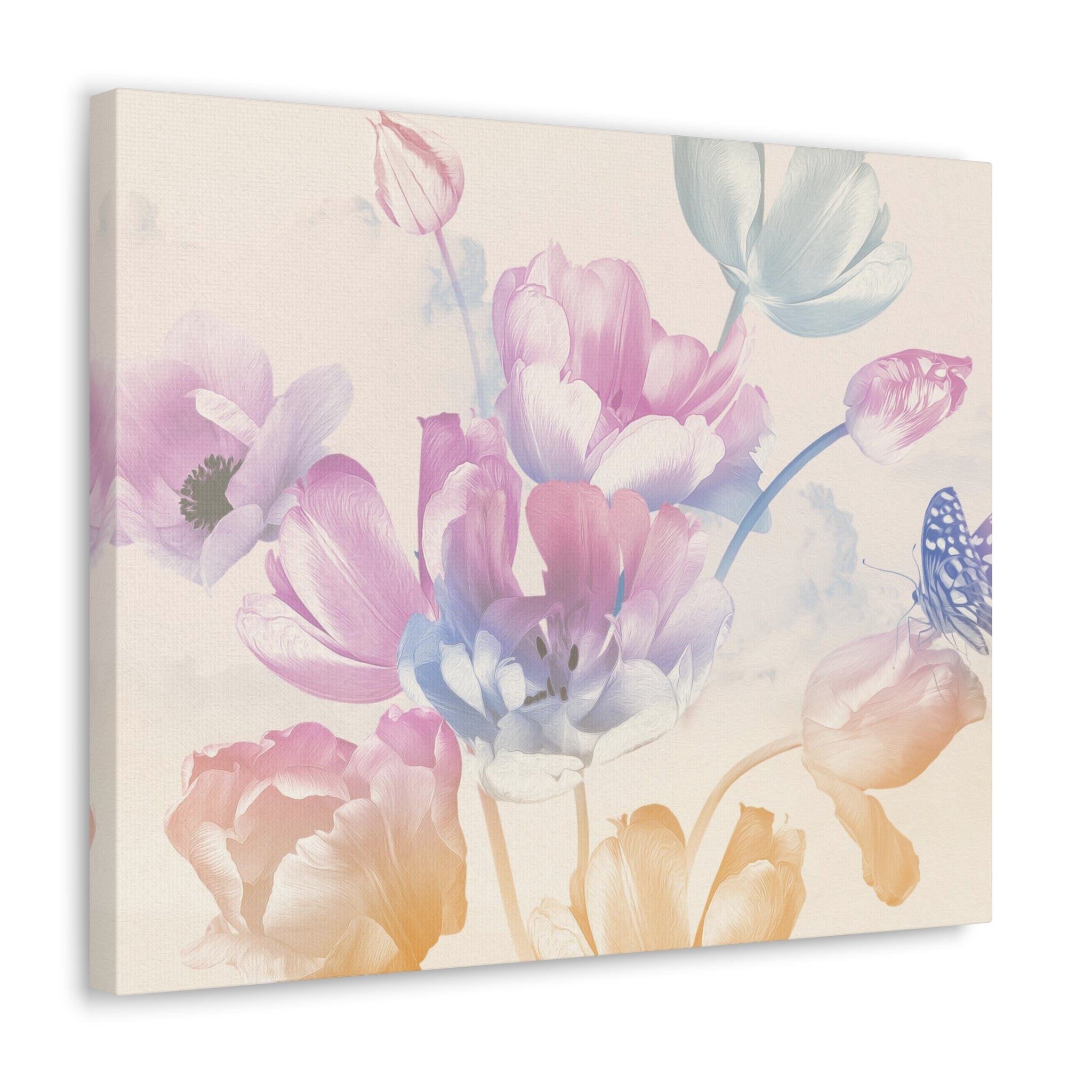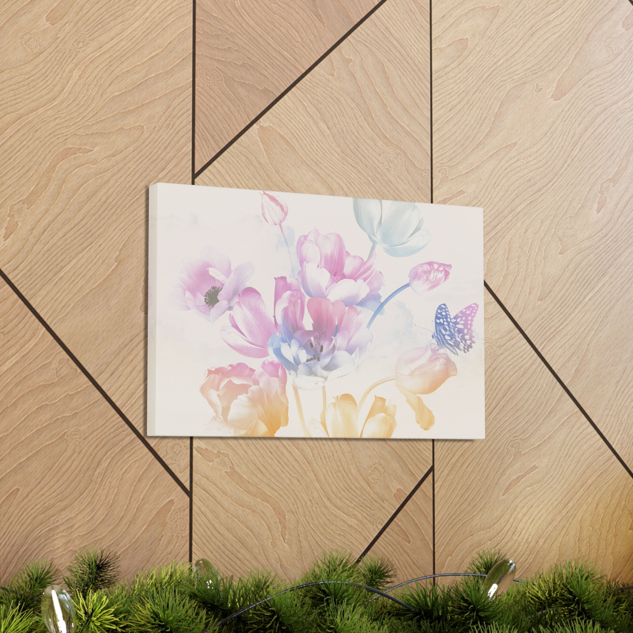 Bouquet Of Spring Garden Tulips And Butterflies Flower Canvas Wall Art for Home Decor Ready-to-Hang