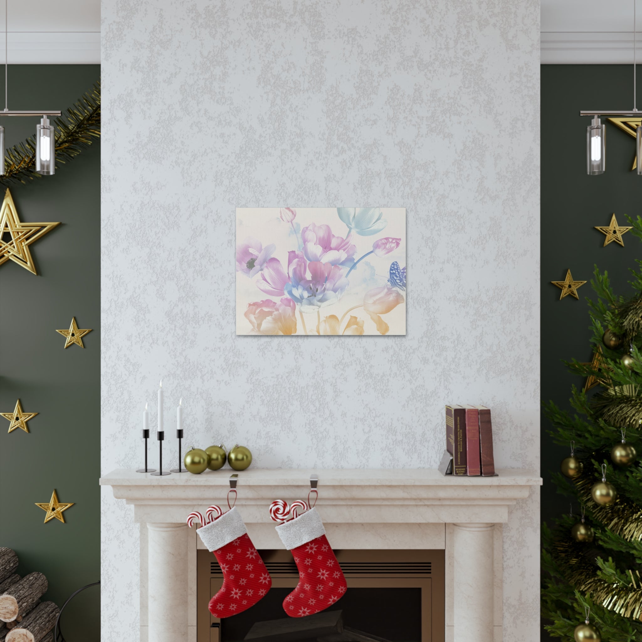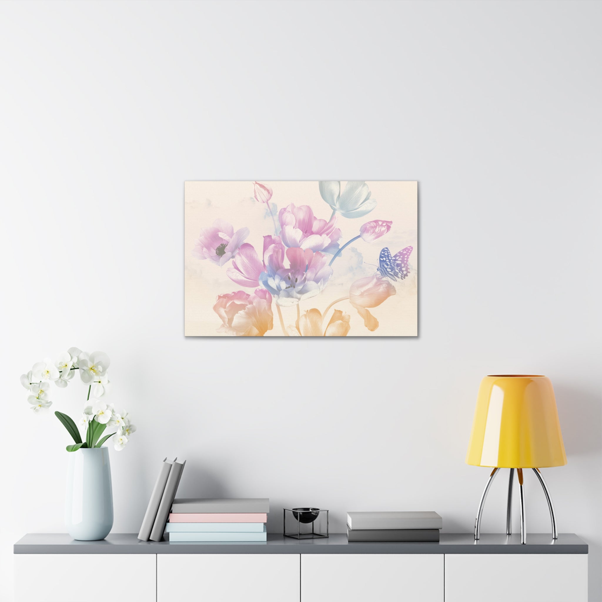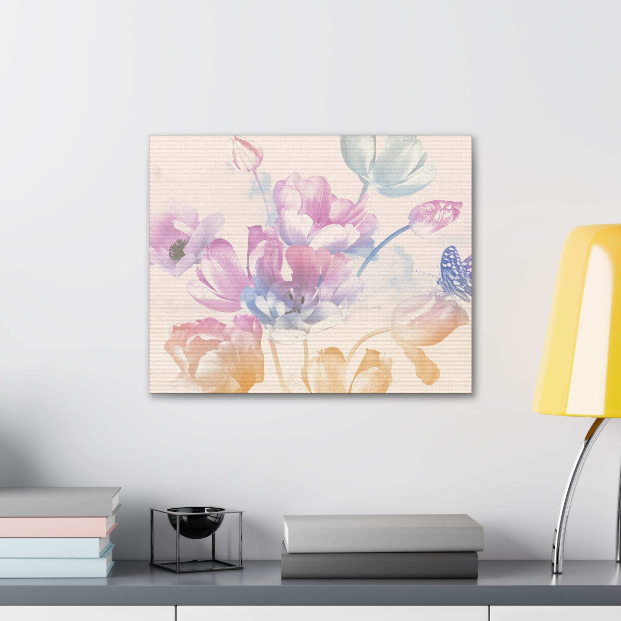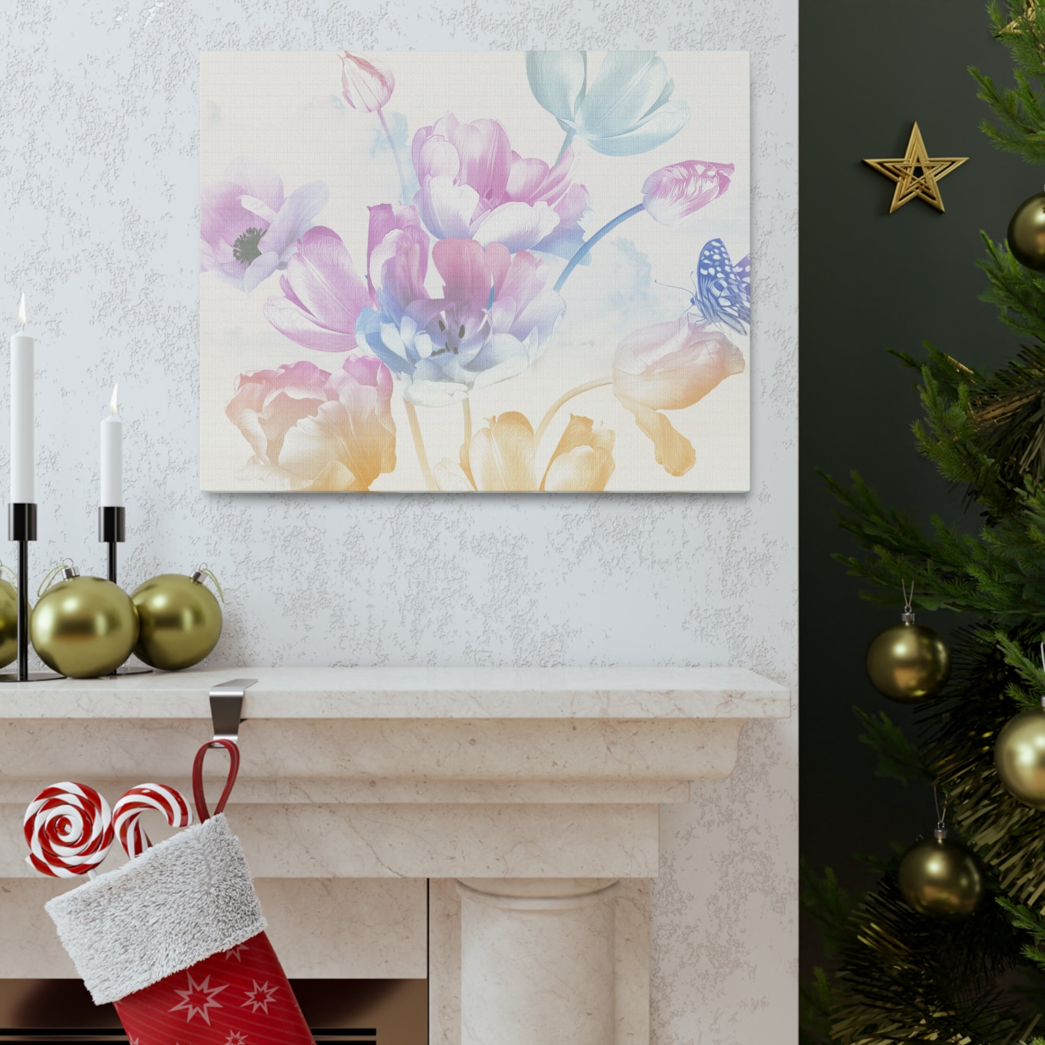 Bouquet Of Spring Garden Tulips And Butterflies Flower Canvas Wall Art for Home Decor Ready-to-Hang