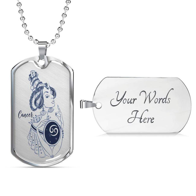 Cancer Constellation Horoscope Zodiac Dog Tag Stainless Steel or 18k Gold 24" Chain