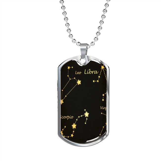 Celestial Zodiac Dark Necklace Stainless Steel or 18k Gold Dog Tag 24" Chain