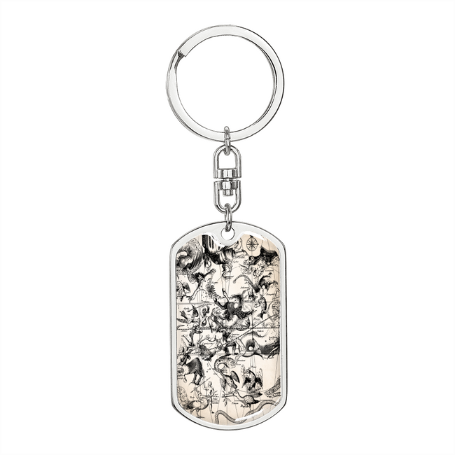Celestial Animals Stainless Steel or 18k Gold Premium Swivel Dog Tag Keychain