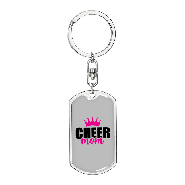 Cheer Mom Stainless Steel or 18k Gold Premium Swivel Dog Tag Keychain