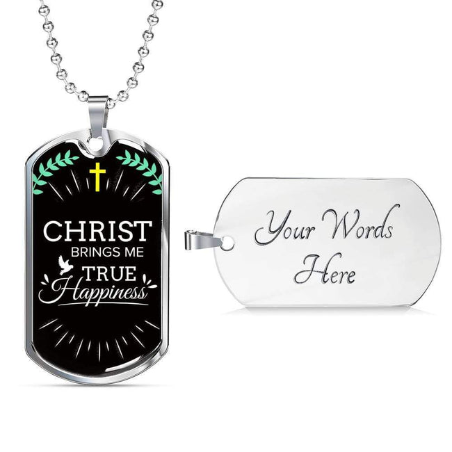 Christ Brings Me True Happiness Necklace Stainless Steel or 18k Gold Dog Tag 24" Chain