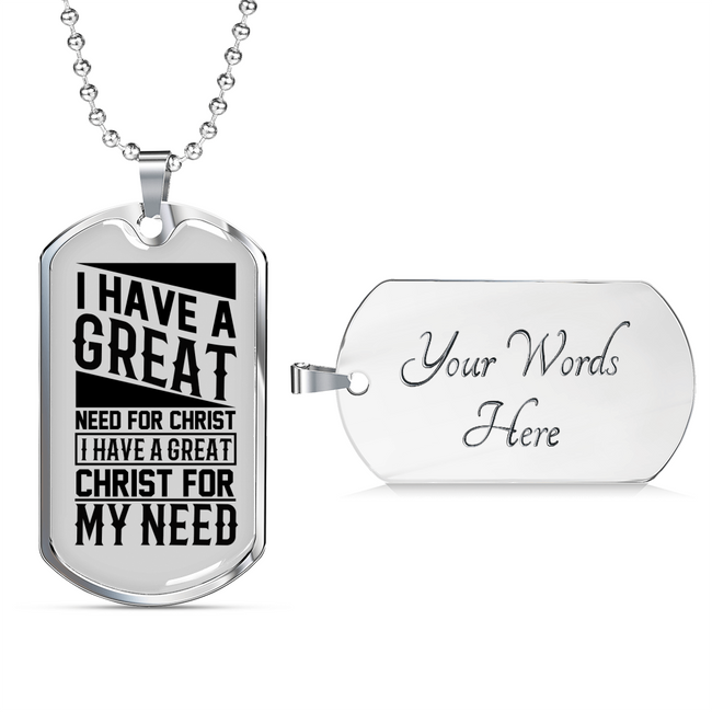 Christ For My Need Necklace Stainless Steel or 18k Gold Dog Tag 24" Chain