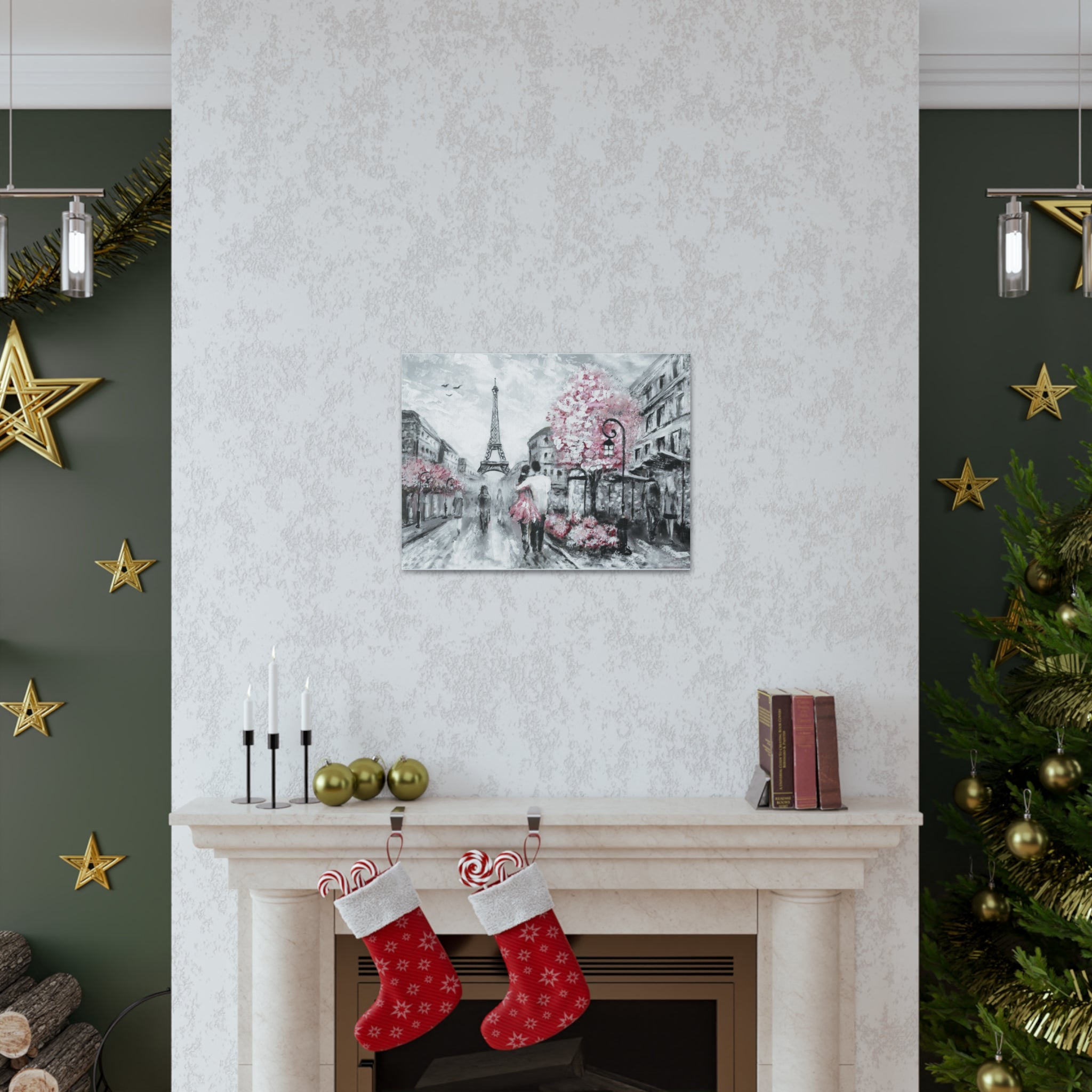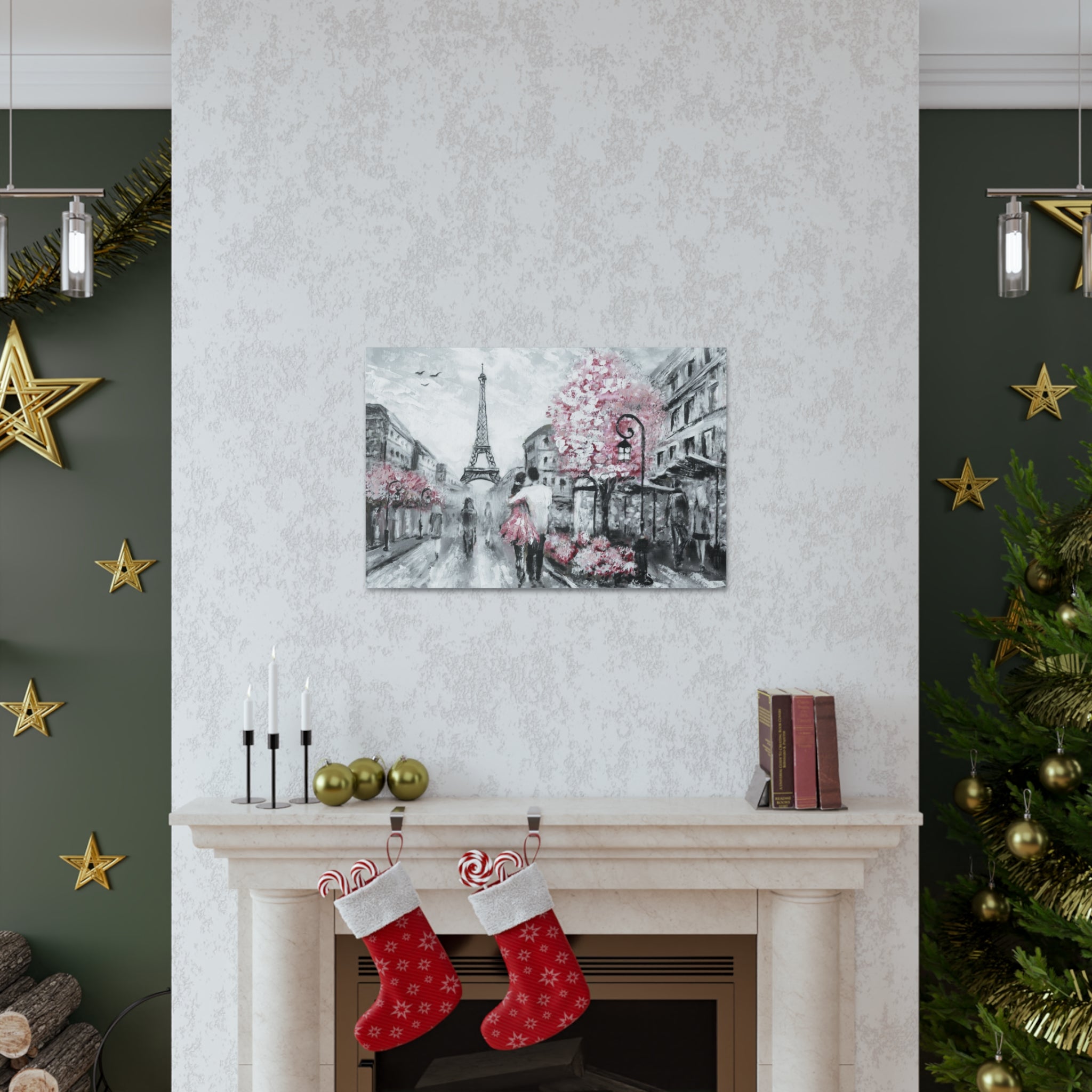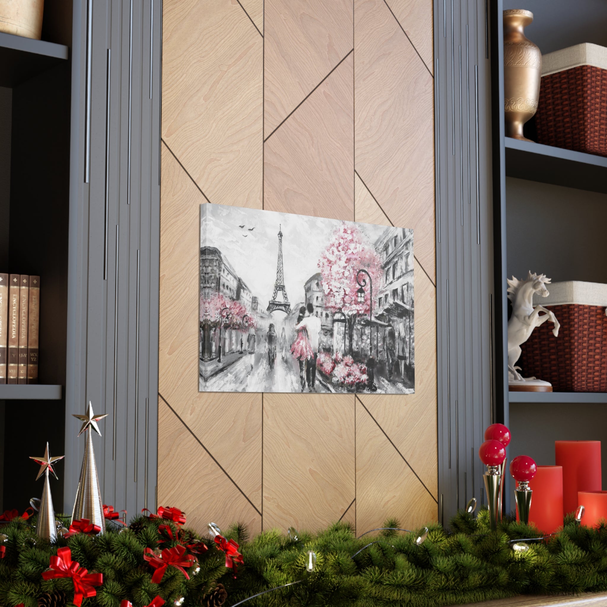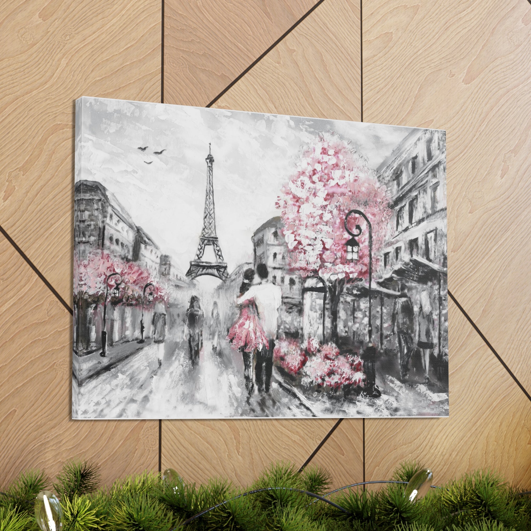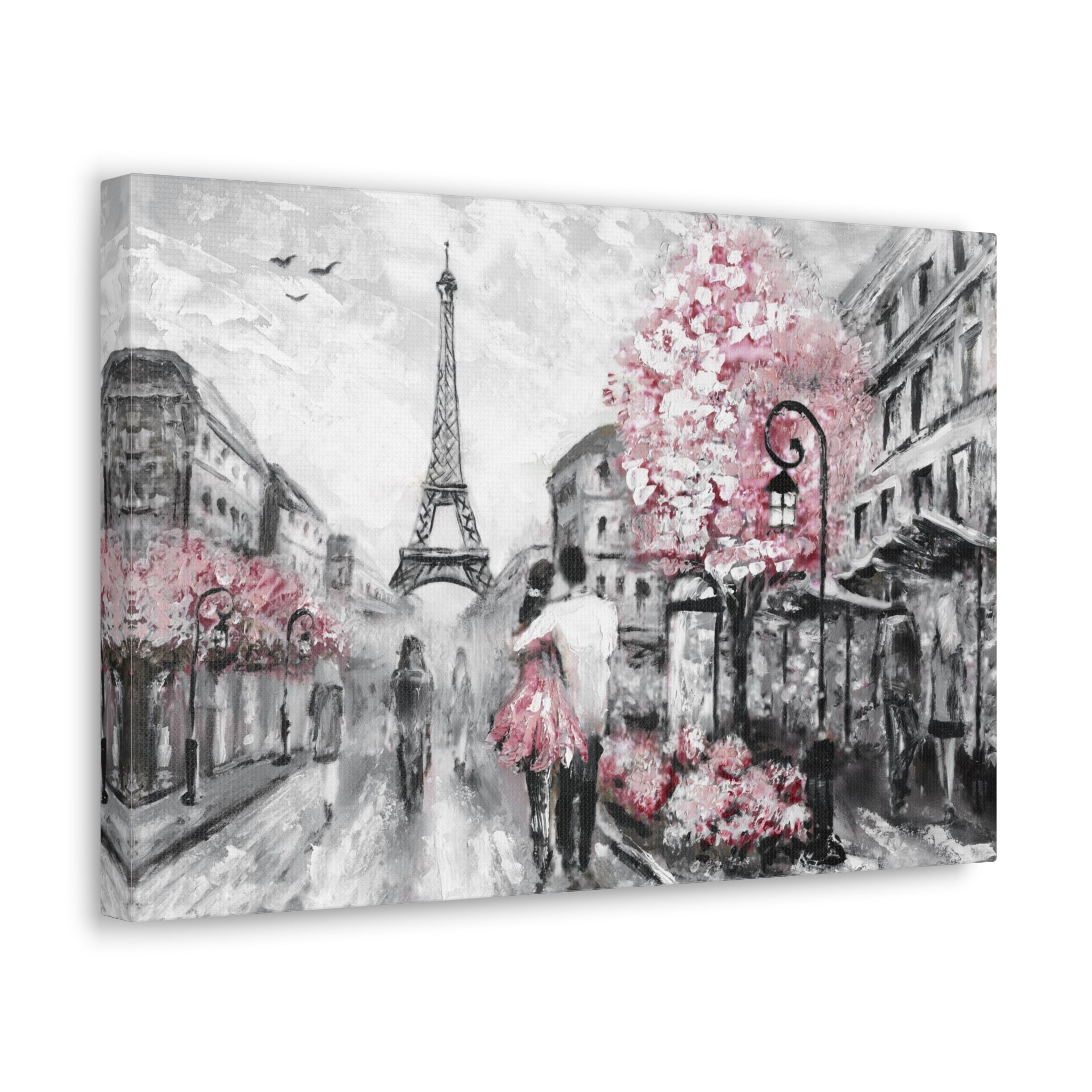 Couple Hug Pink Paris France Canvas Artwork Breathtaking French City for Home Decor Ready to Hang