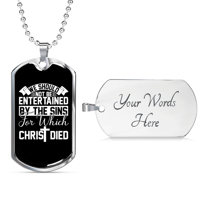 Christ Died Necklace Stainless Steel or 18k Gold Dog Tag 24" Chain