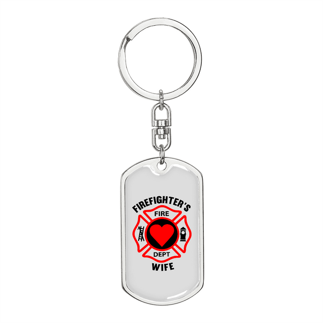 To My Wife Firefighter Wifey Stainless Steel or 18k Gold Premium Swivel Dog Tag Keychain