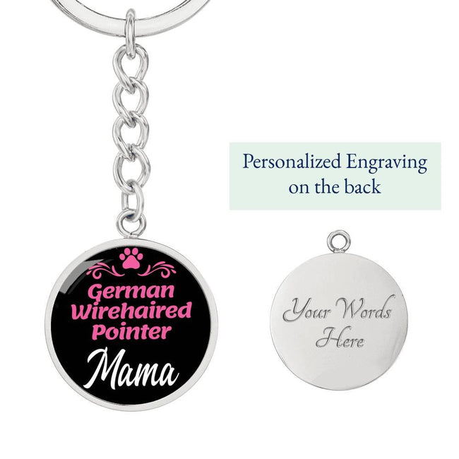 Dog Mom Keyring German Wirehaired Pointer Mama Circle Keychain Stainless Steel or 18k Gold