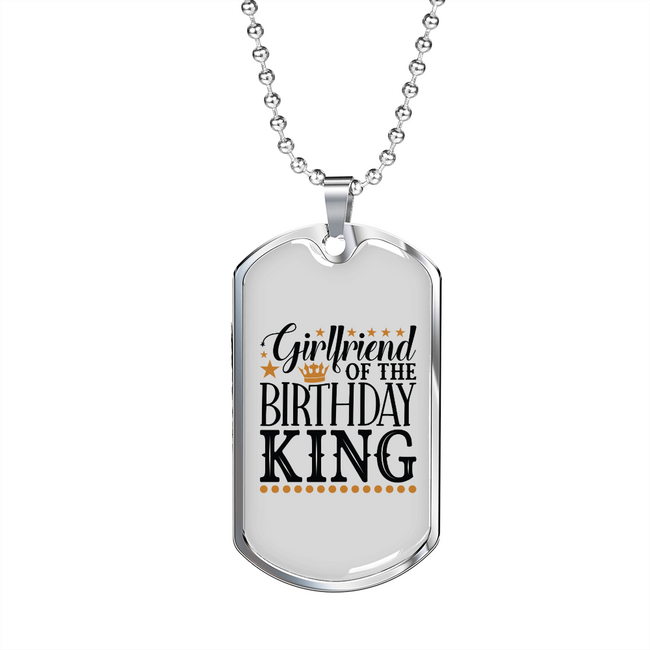 To My Girlfriend Girlfriend Of The Birthday King Necklace Stainless Steel or 18k Gold Dog Tag 24" Chain