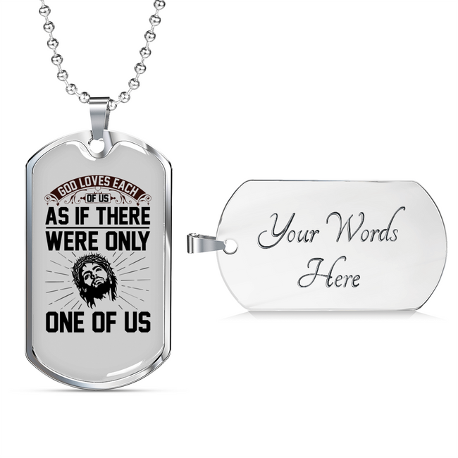Christ Loves Us Necklace Stainless Steel or 18k Gold Dog Tag 24" Chain