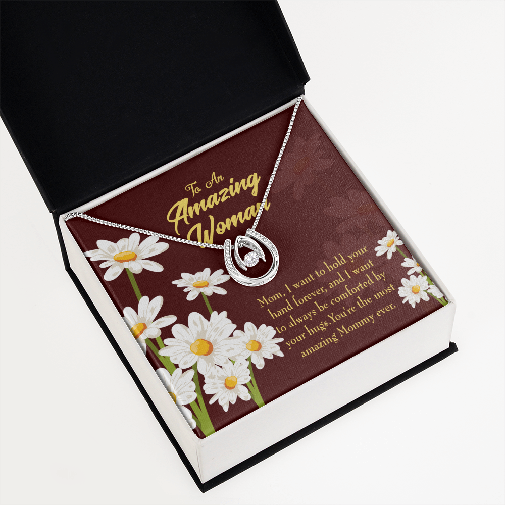 Most Amazing Mom Ever Lucky Horseshoe Necklace Message Card 14k w CZ Crystals
