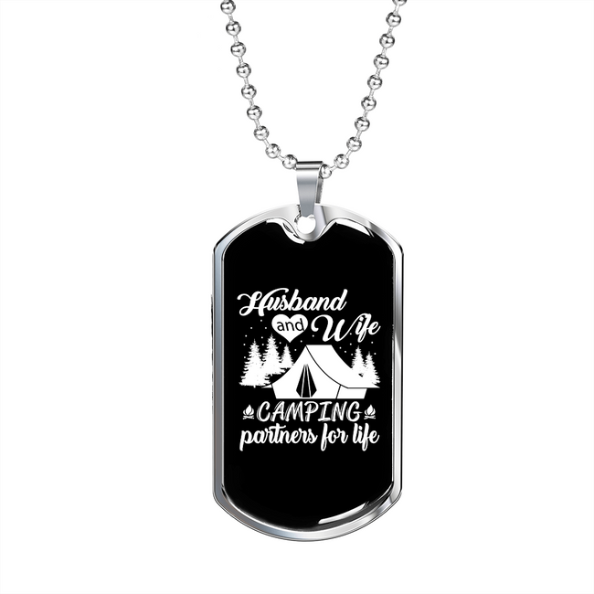 To My Husband Husband And Wife Camping Partners Necklace Stainless Steel or 18k Gold Dog Tag 24" Chain