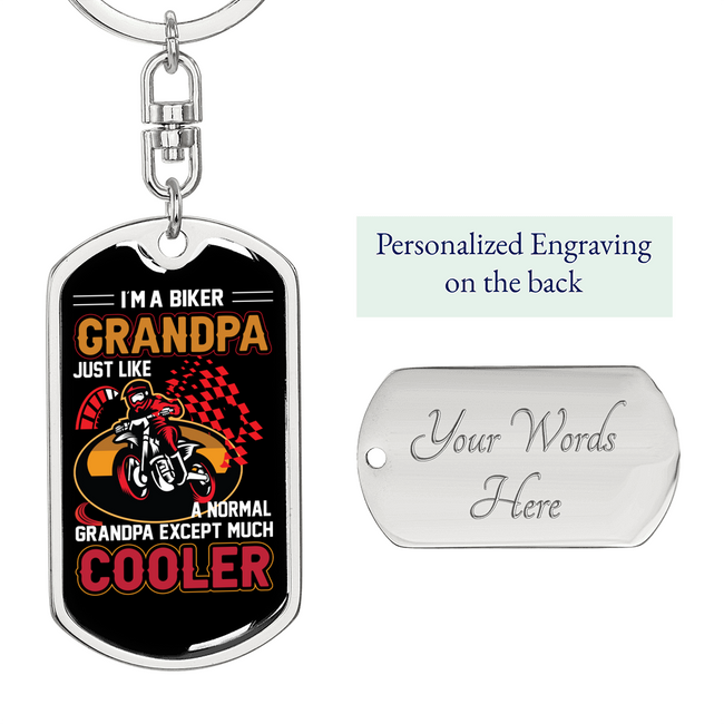 Cooler Biker Grandpa Stainless Steel or 18k Gold Premium Swivel Dog Tag Keychain