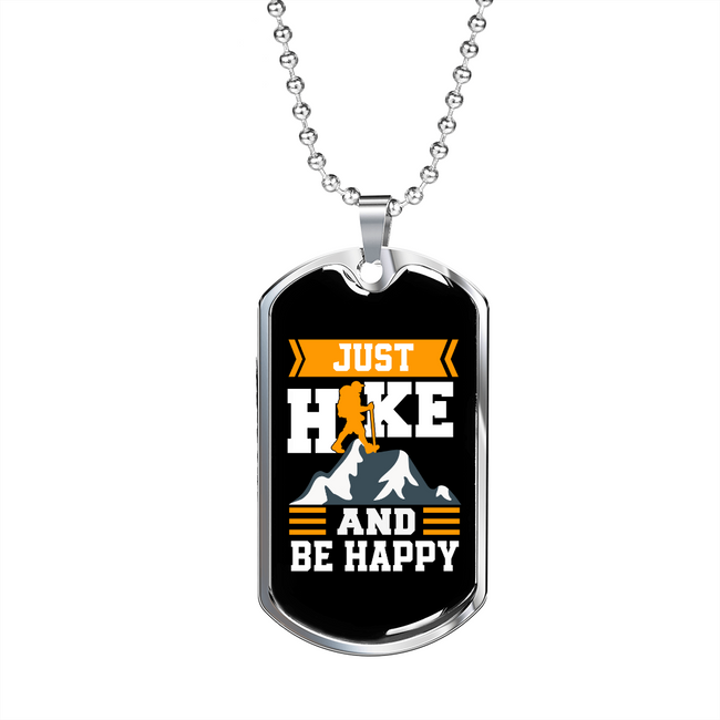 Camper Necklace Just Hike and Be Happy Necklace Stainless Steel or 18k Gold Dog Tag 24" Chain