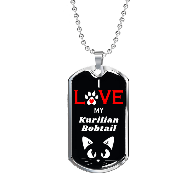 I Love My Kurilian Bobtail Cat Necklace Stainless Steel or 18k Gold Dog Tag 24" Chain
