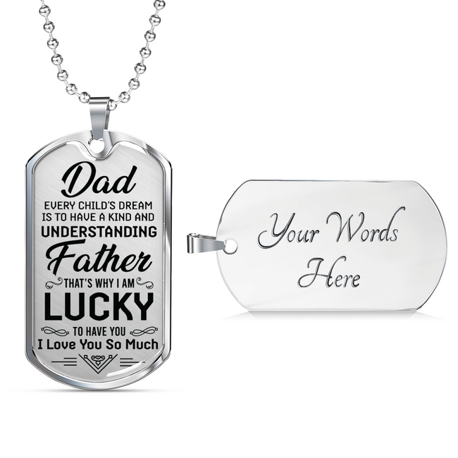 Love You Dad Necklace Stainless Steel or 18k Gold Dog Tag 24" Chain