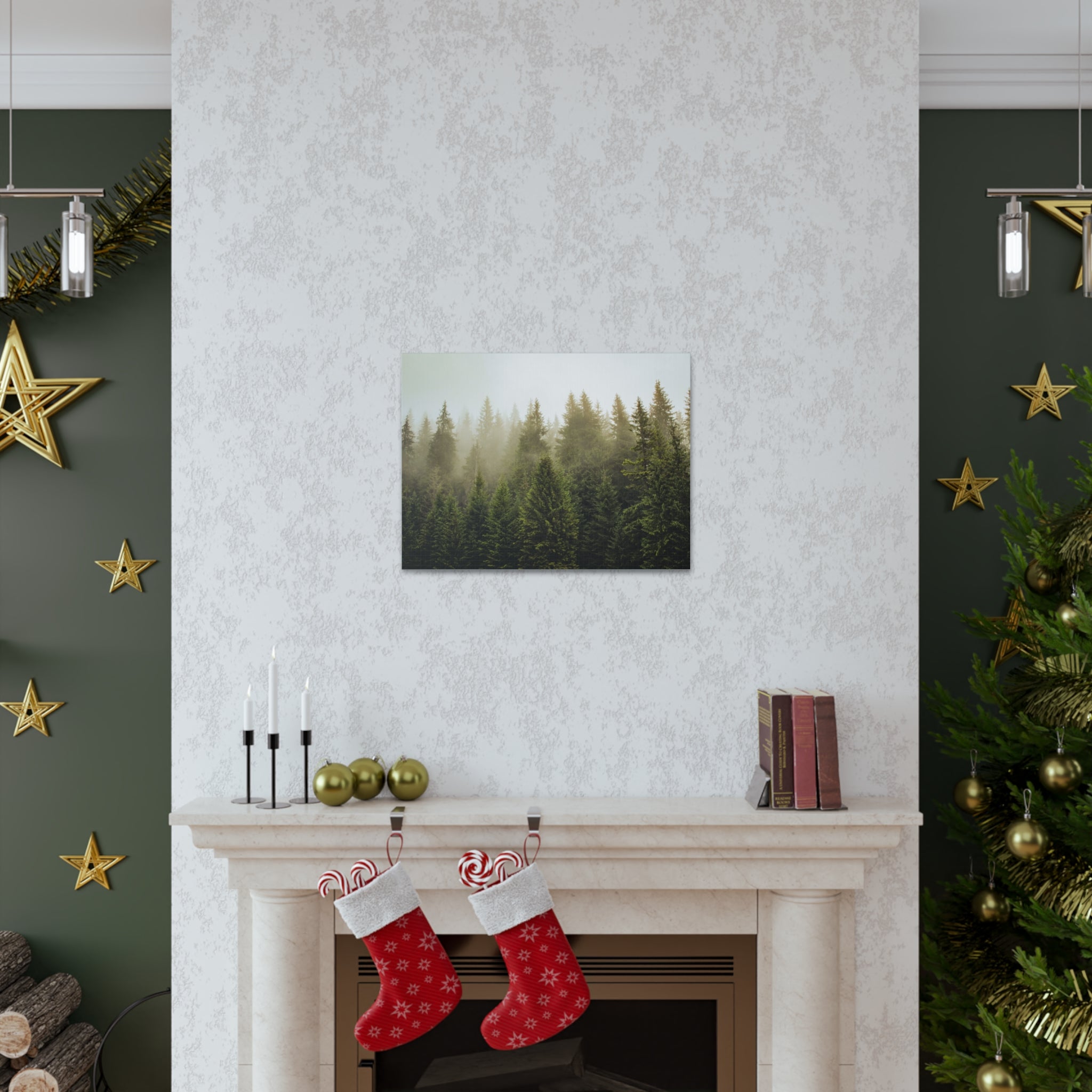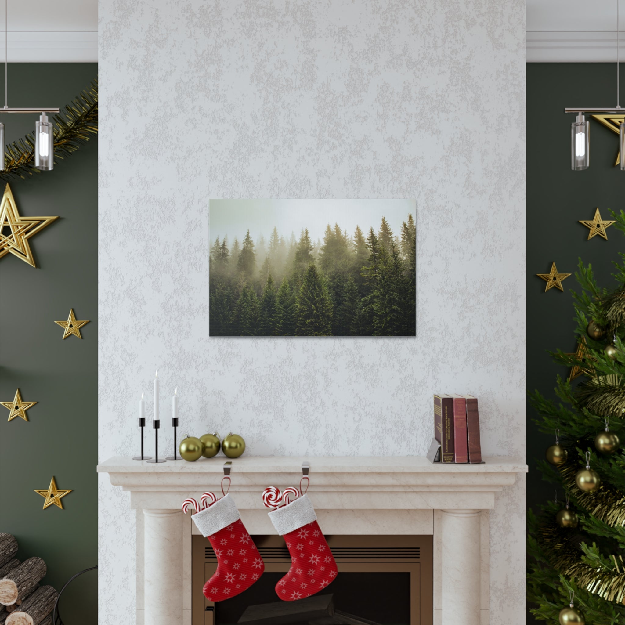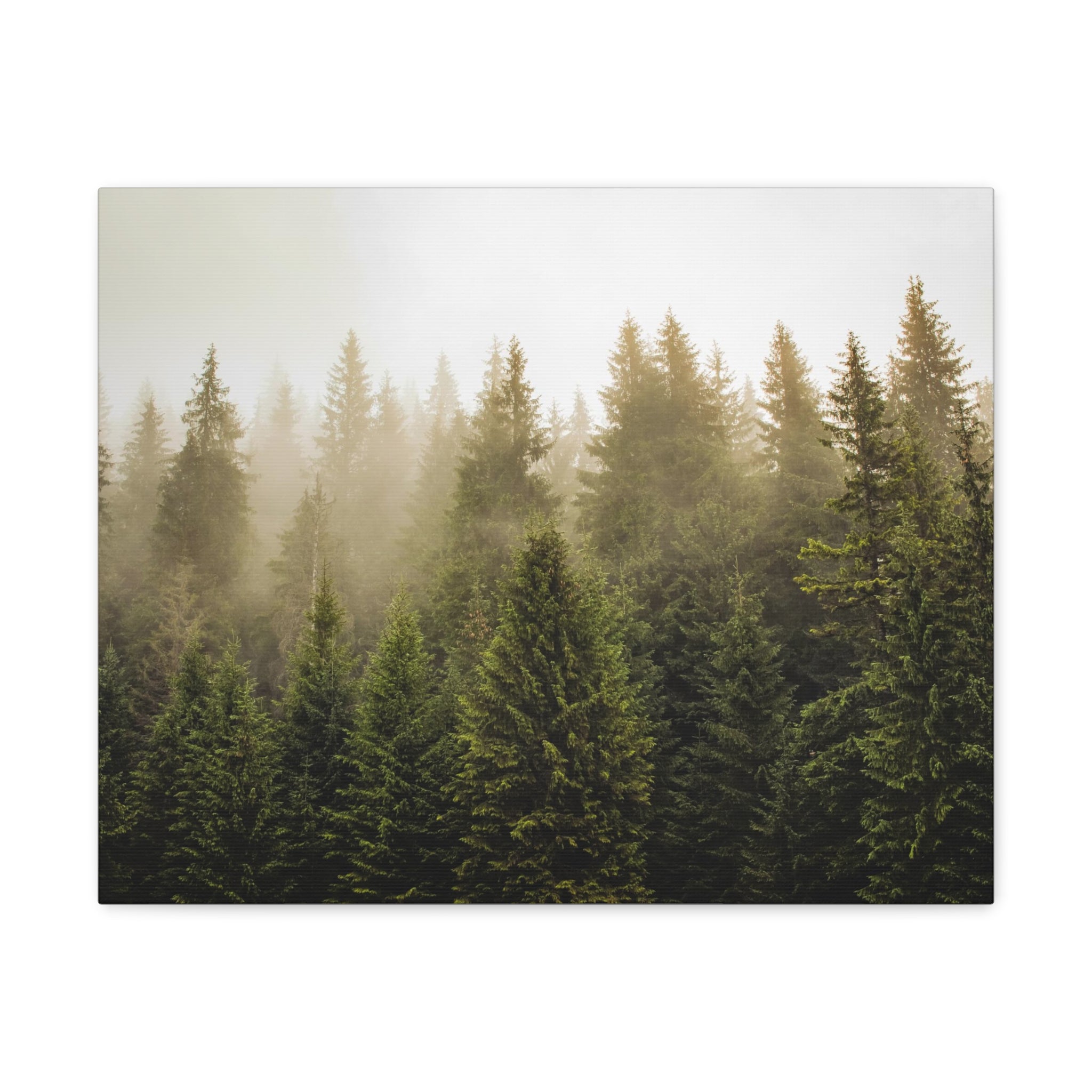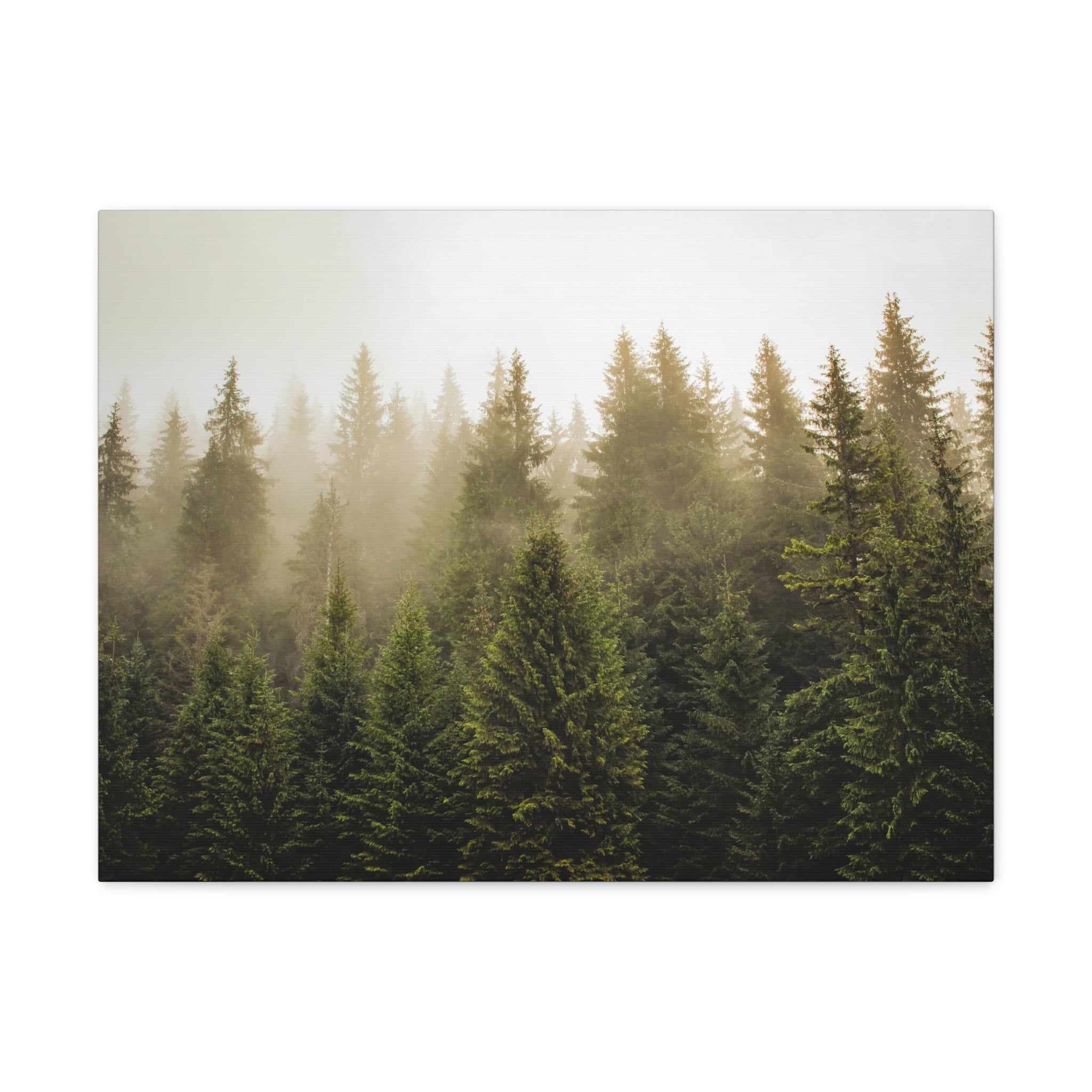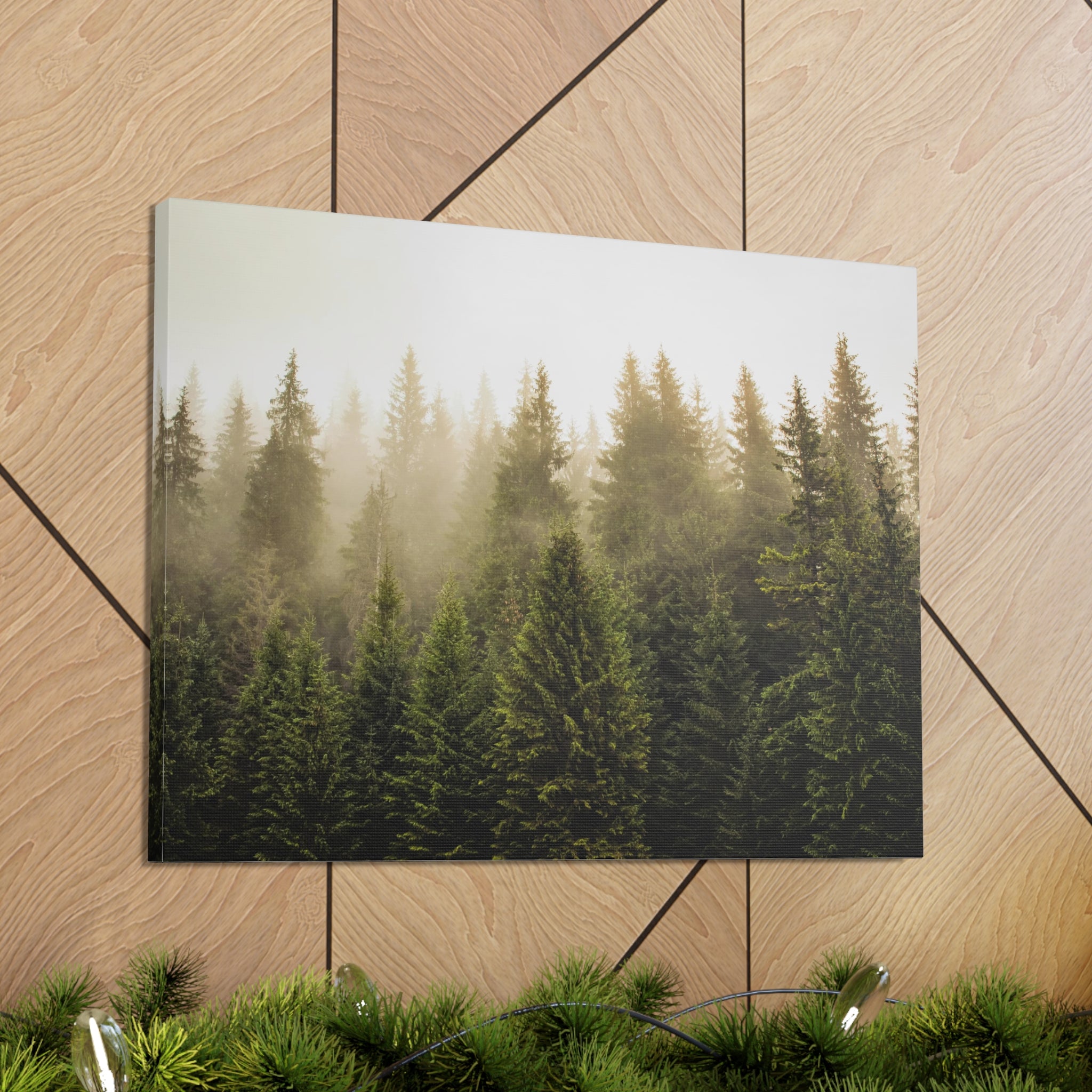 Misty Pine Tree Forest Nature Wilderness Photography Canvas Wall Art for Home Decor Ready-to-Hang