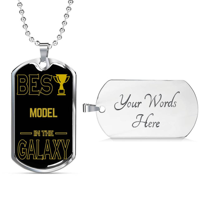 Best Model In The Galaxy Necklace Stainless Steel or 18k Gold Dog Tag w 24"