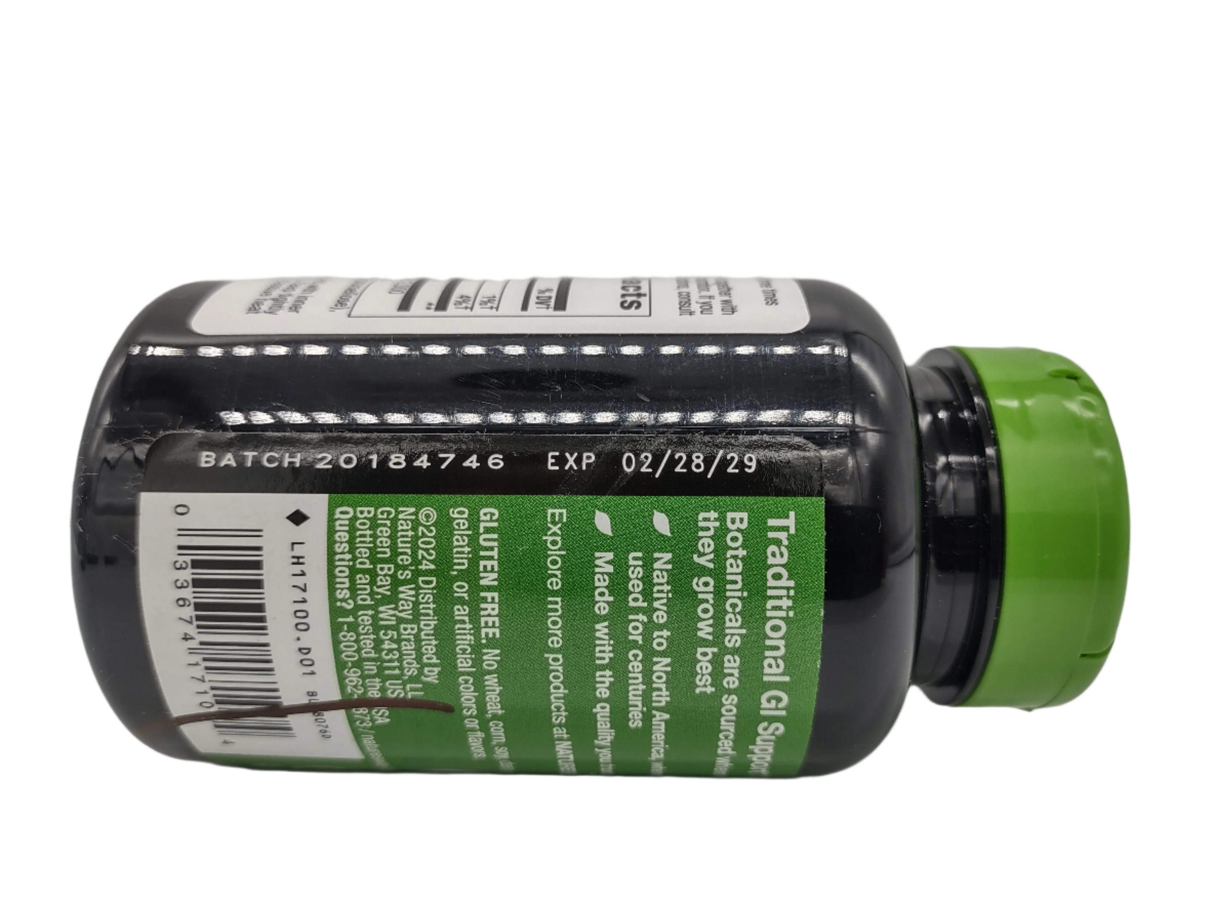 Nature’s Way Slippery Elm Bark Capsules provide 400 mg of slippery elm inner bark per serving, valued for its soothing and emollient effects. This natural supplement supports digestive and respiratory health, offering a gentle, plant-based solution for overall wellness. Non-GMO Project Verified and Tru-ID Certified, these capsules reflect Nature’s Way's commitment to quality and purity. Each pack contains two bottles, each with 100 capsules, ensuring a convenient, long-lasting supply.
