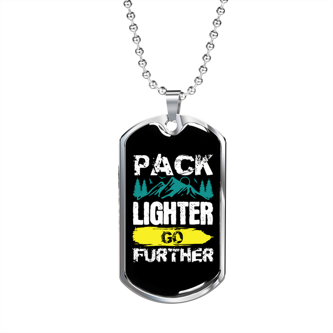 Camper Necklace Pack Lighter Go Further White Necklace Stainless Steel or 18k Gold Dog Tag 24" Chain