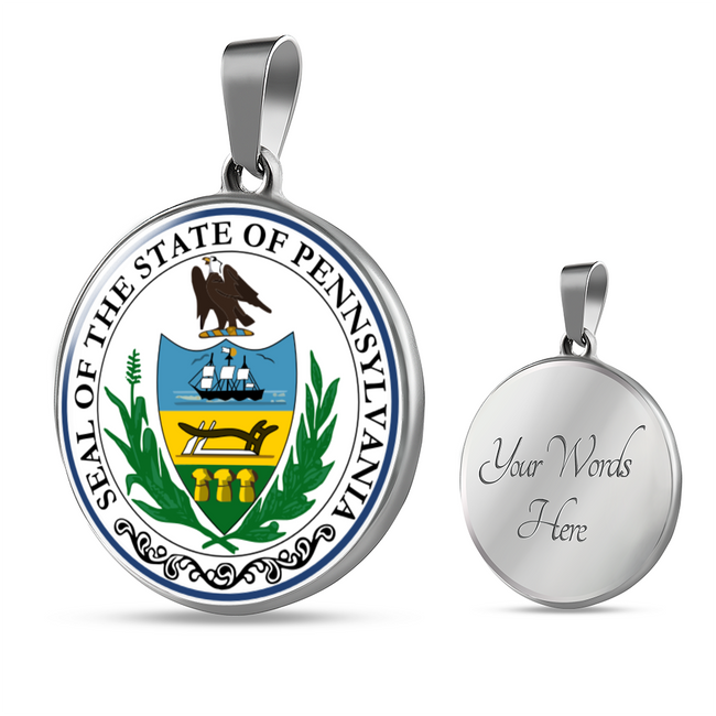 Pennsylvania State Seal Necklace Circle Pendant Stainless Steel or 18k Gold 18-22"